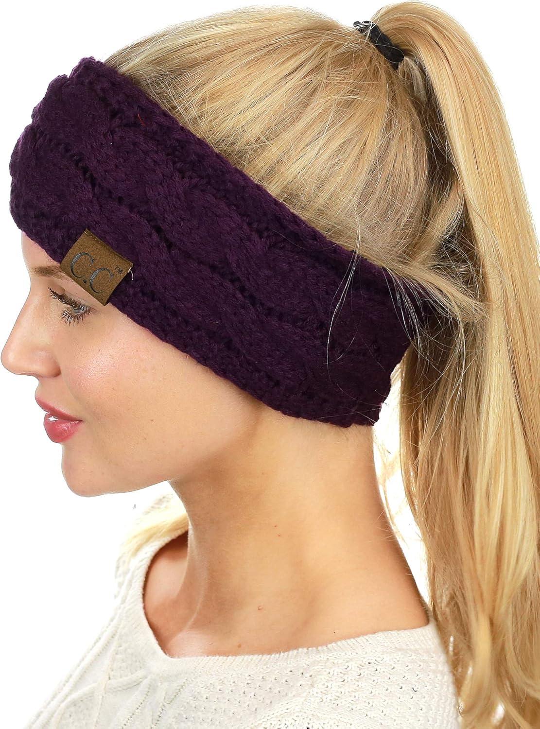 imageCC Soft Stretch Winter Warm Cable Knit Fuzzy Lined Ear Warmer HeadbandDark Purple