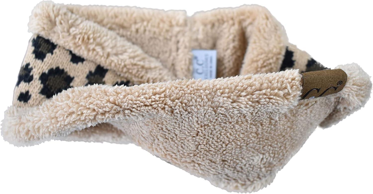 C.C Soft Stretch Winter Warm Cable Knit Fuzzy Lined Ear Warmer Headband(Leopard Camel)