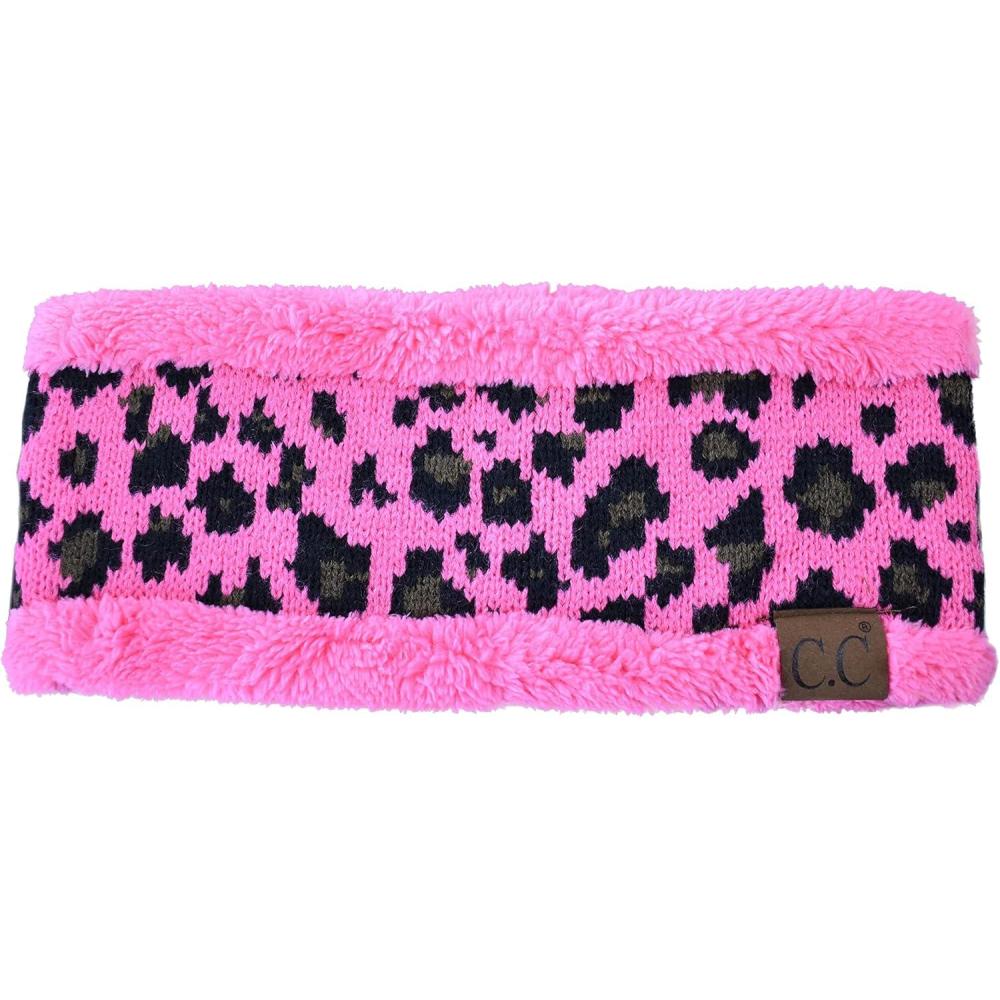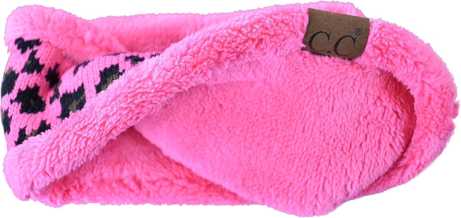 C.C Soft Stretch Winter Warm Cable Knit Fuzzy Lined Ear Warmer Headband(Leopard Candy Pink)