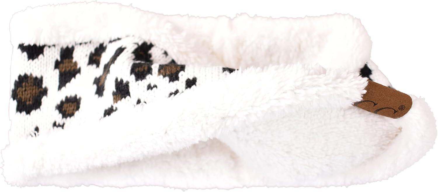 C.C Soft Stretch Winter Warm Cable Knit Fuzzy Lined Ear Warmer Headband(Leopard Ivory)