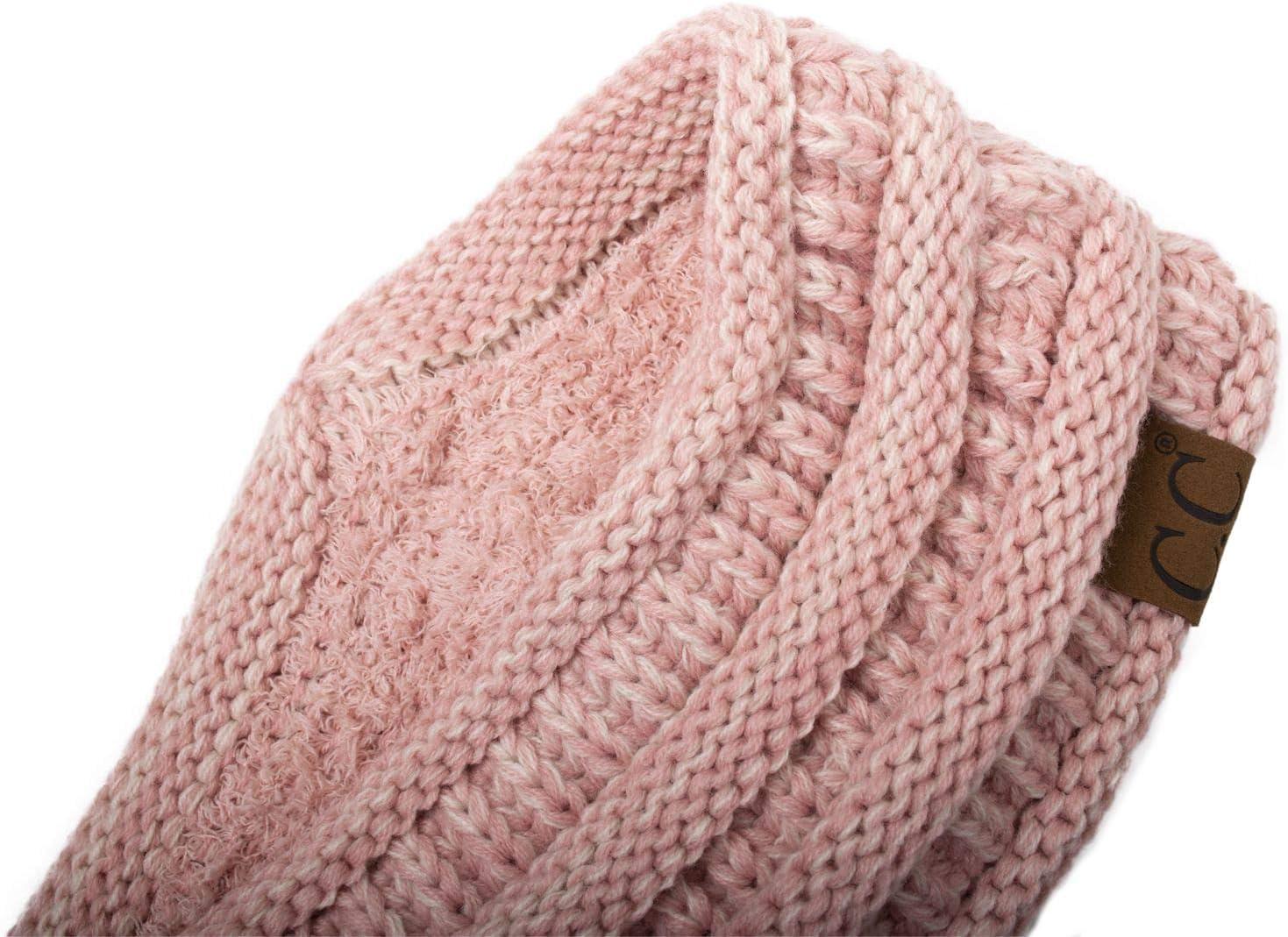 C.C Soft Stretch Winter Warm Cable Knit Fuzzy Lined Ear Warmer Headband(Lt Pink/Beige)