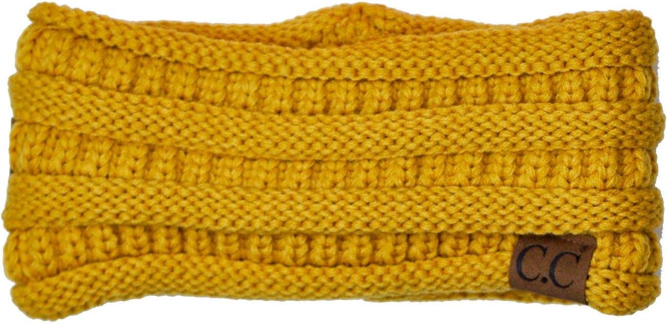 C.C Soft Stretch Winter Warm Cable Knit Fuzzy Lined Ear Warmer Headband(Mustard Ribbed)