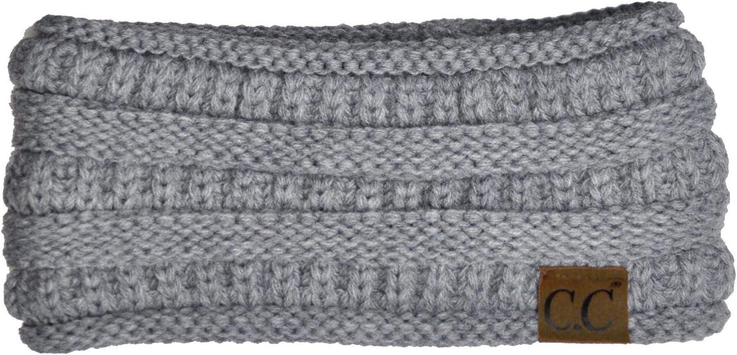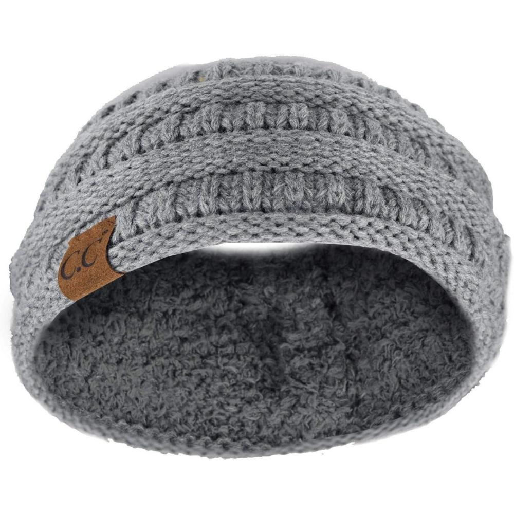 C.C Soft Stretch Winter Warm Cable Knit Fuzzy Lined Ear Warmer Headband(Natural Gray Ribbed)
