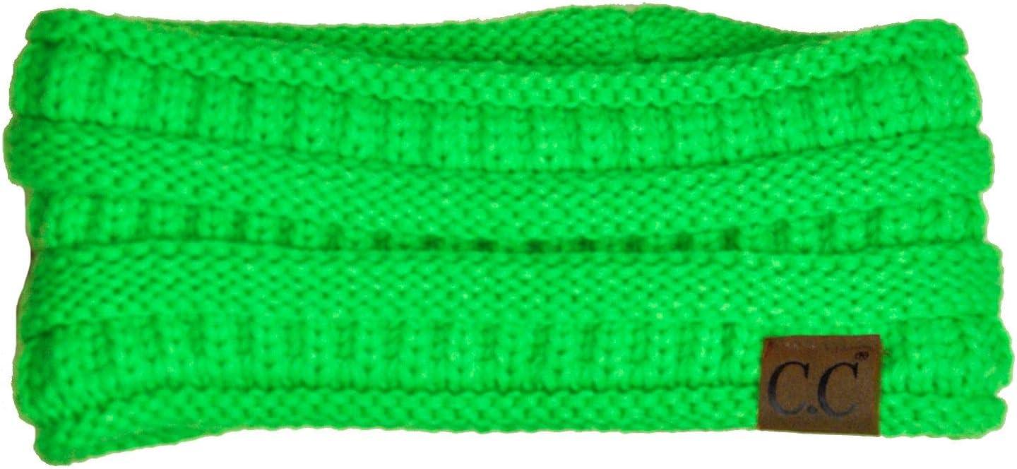 C.C Soft Stretch Winter Warm Cable Knit Fuzzy Lined Ear Warmer Headband(Neon Lime Ribbed)