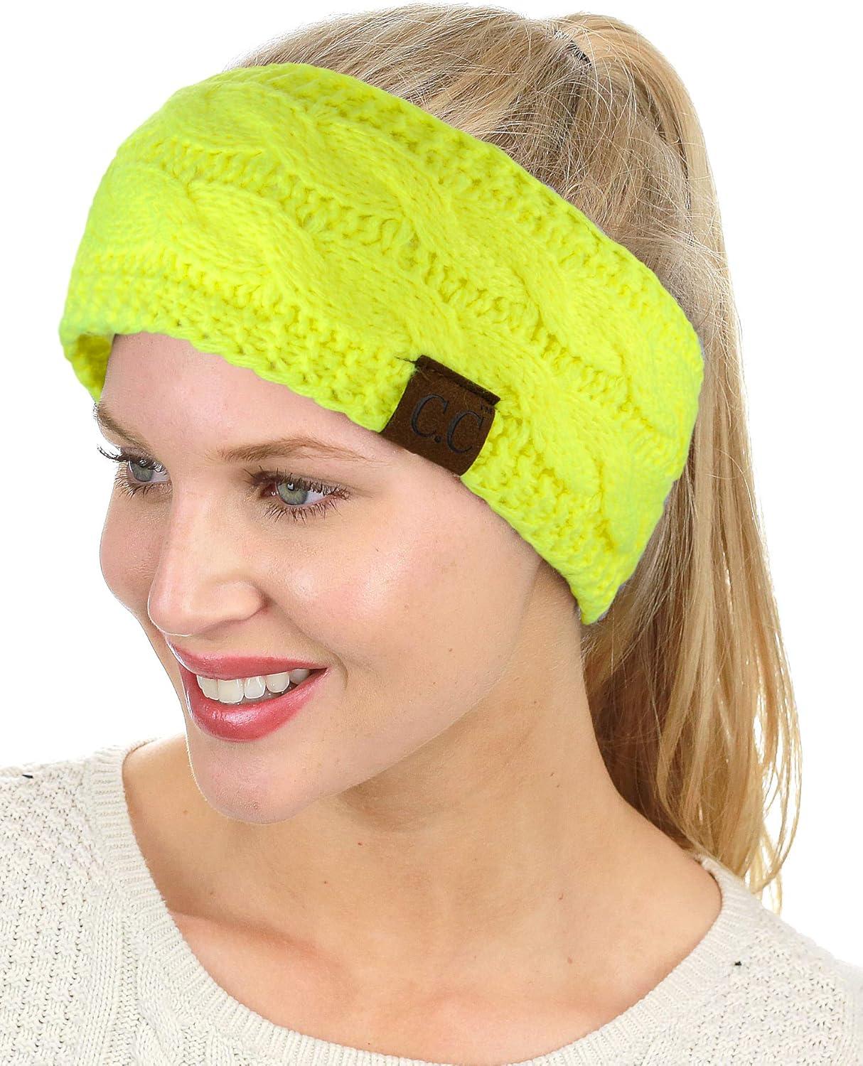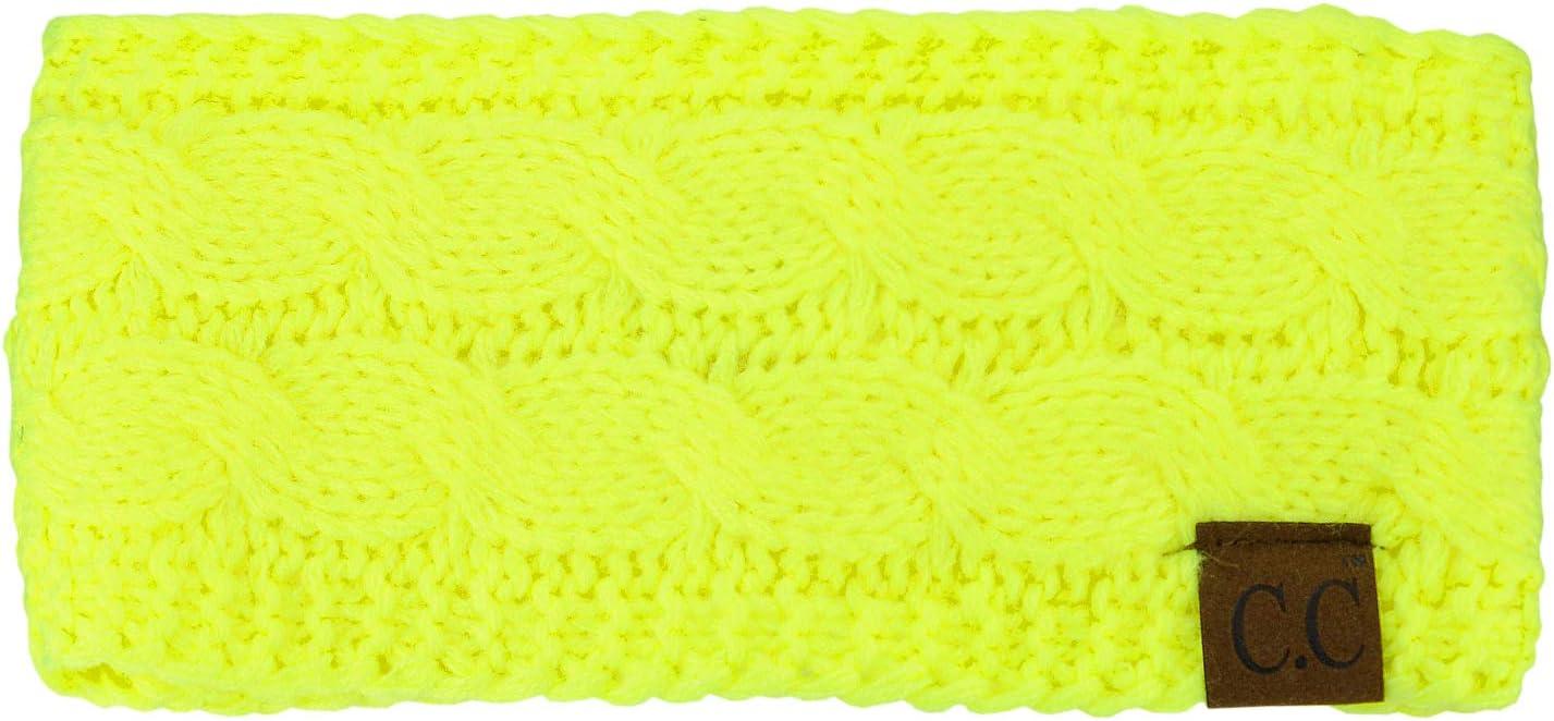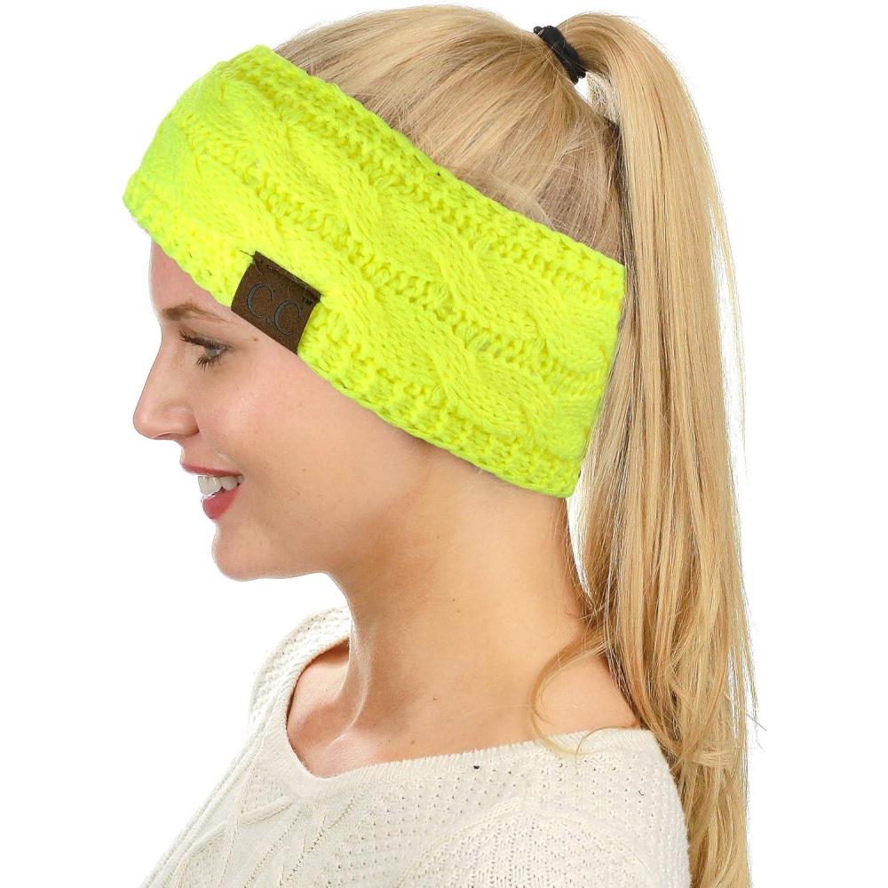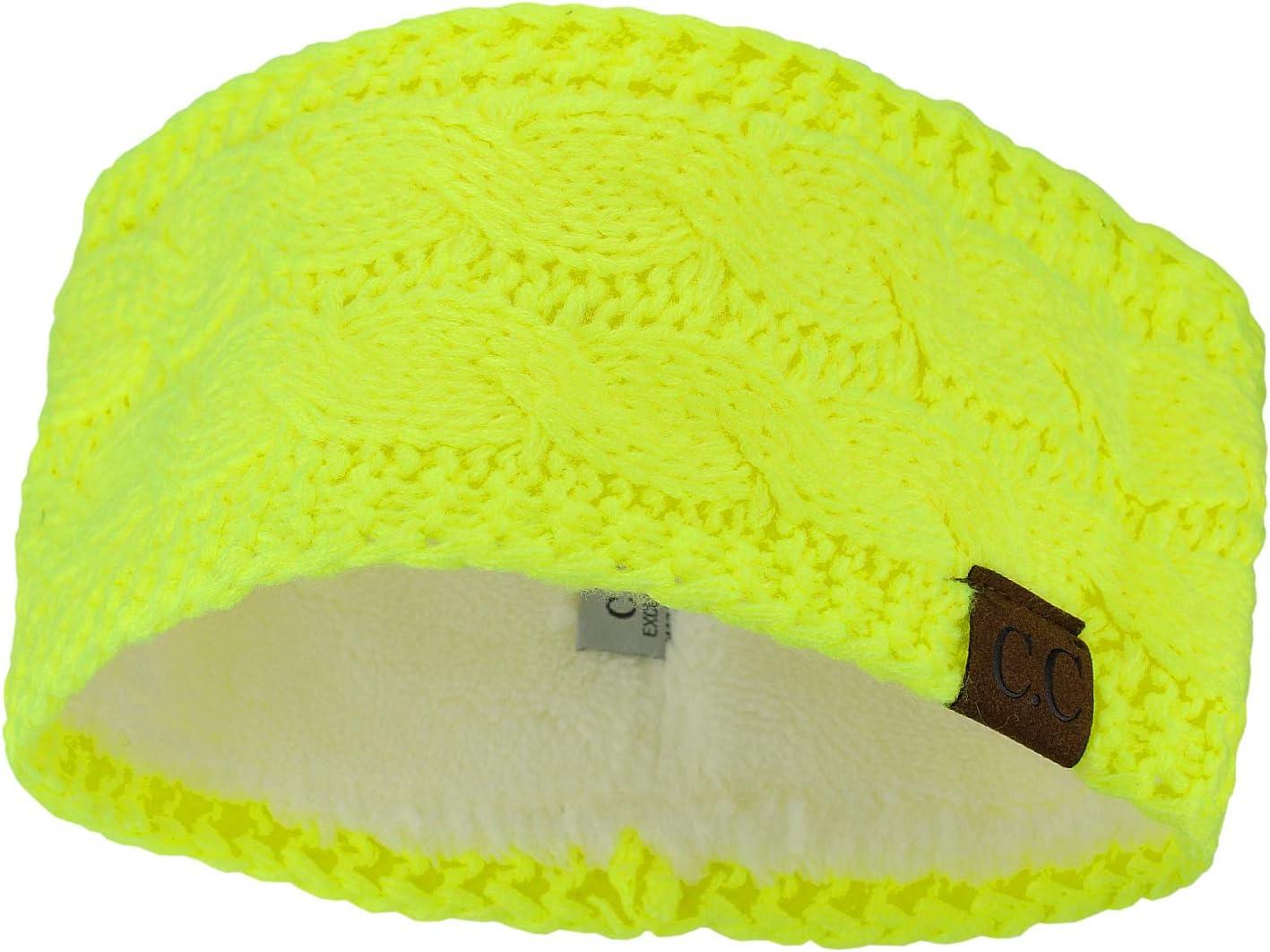 C.C Soft Stretch Winter Warm Cable Knit Fuzzy Lined Ear Warmer Headband(Neon Yellow)
