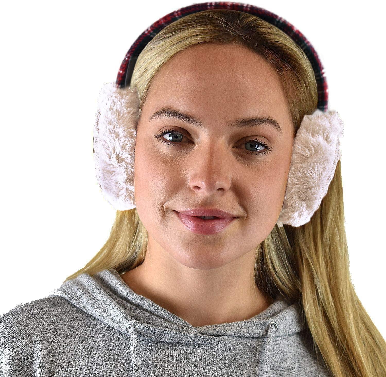 C.C Soft Winter Warm Adjustable Headband Ear Warmer Earmuffs(Argyle Red)