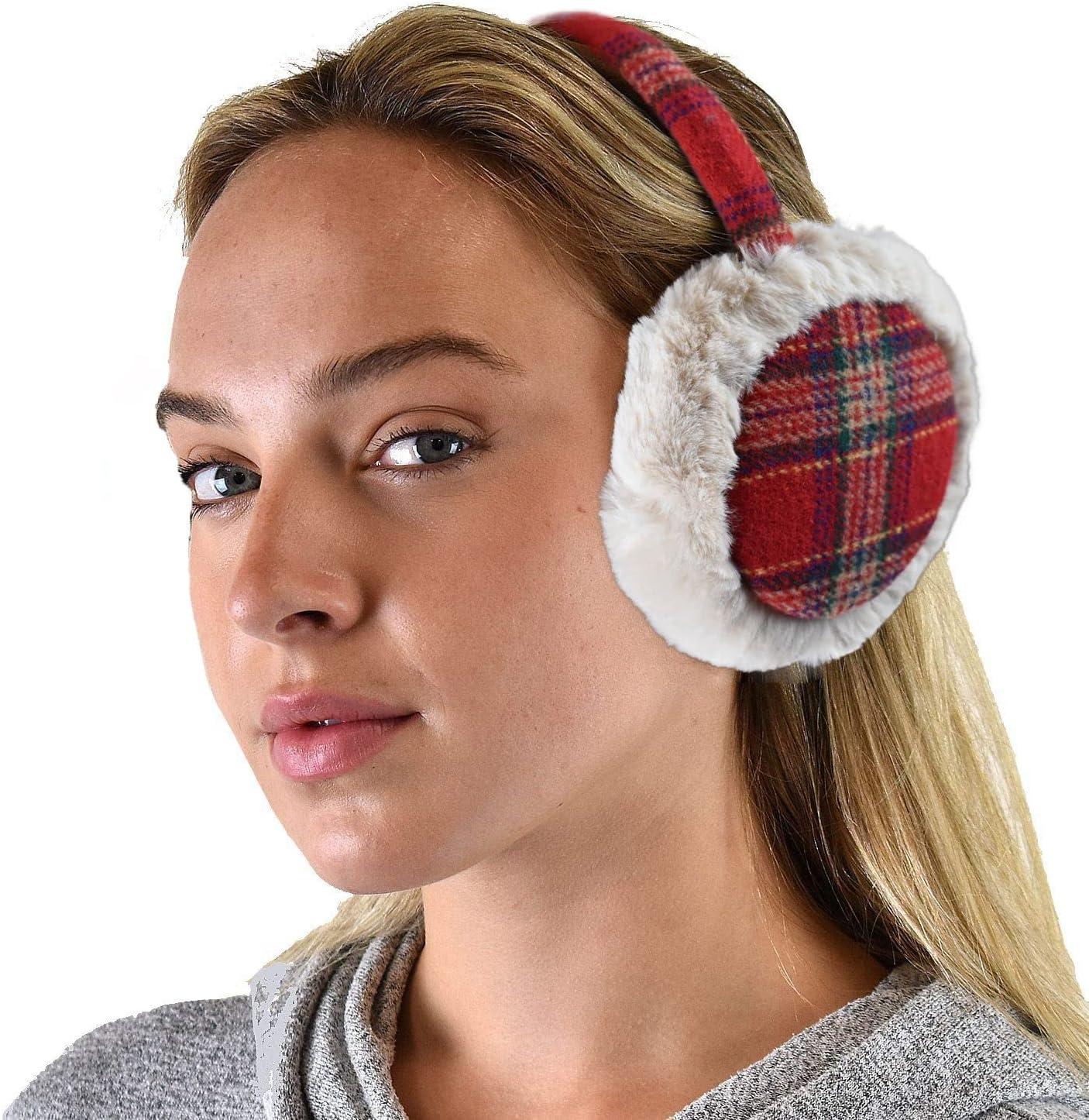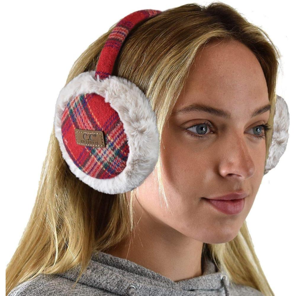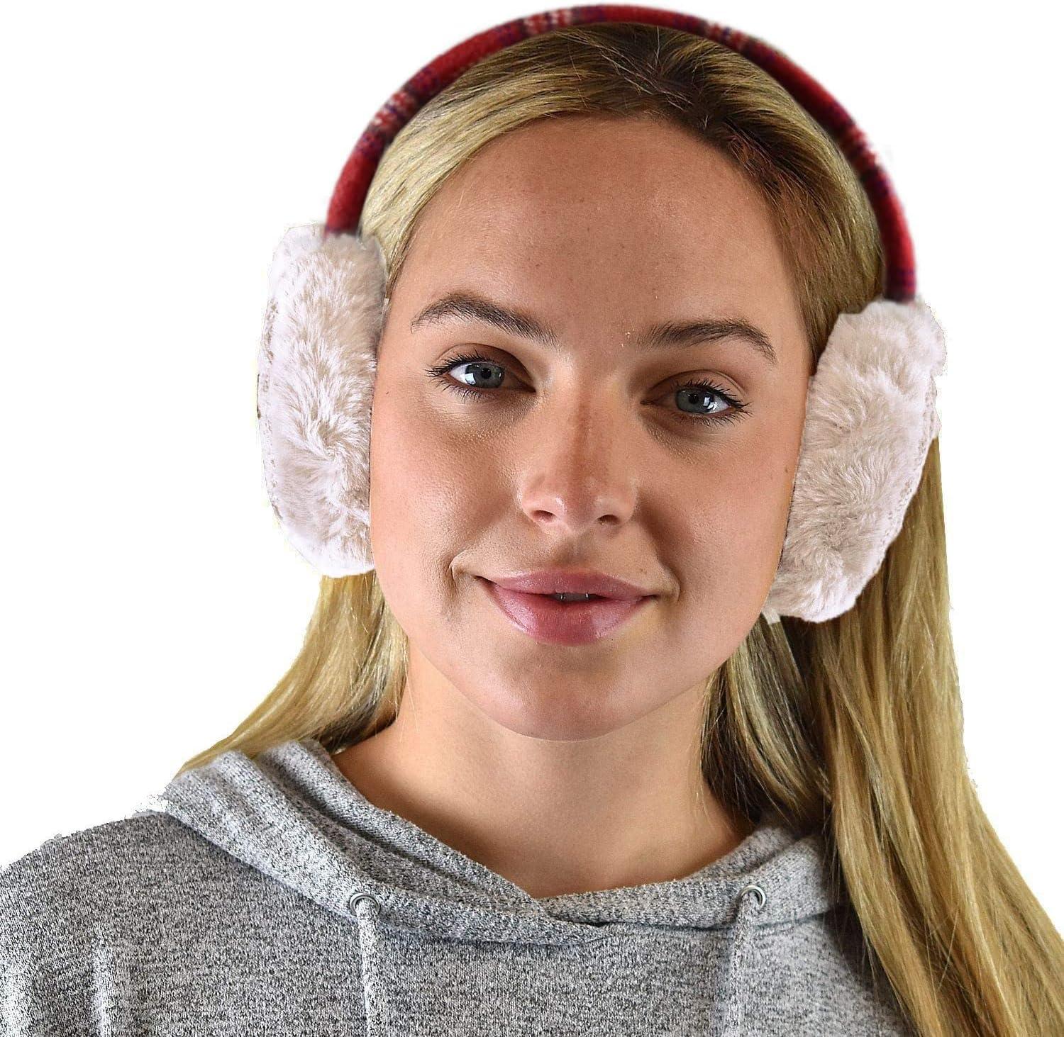 C.C Soft Winter Warm Adjustable Headband Ear Warmer Earmuffs(Argyle Red)