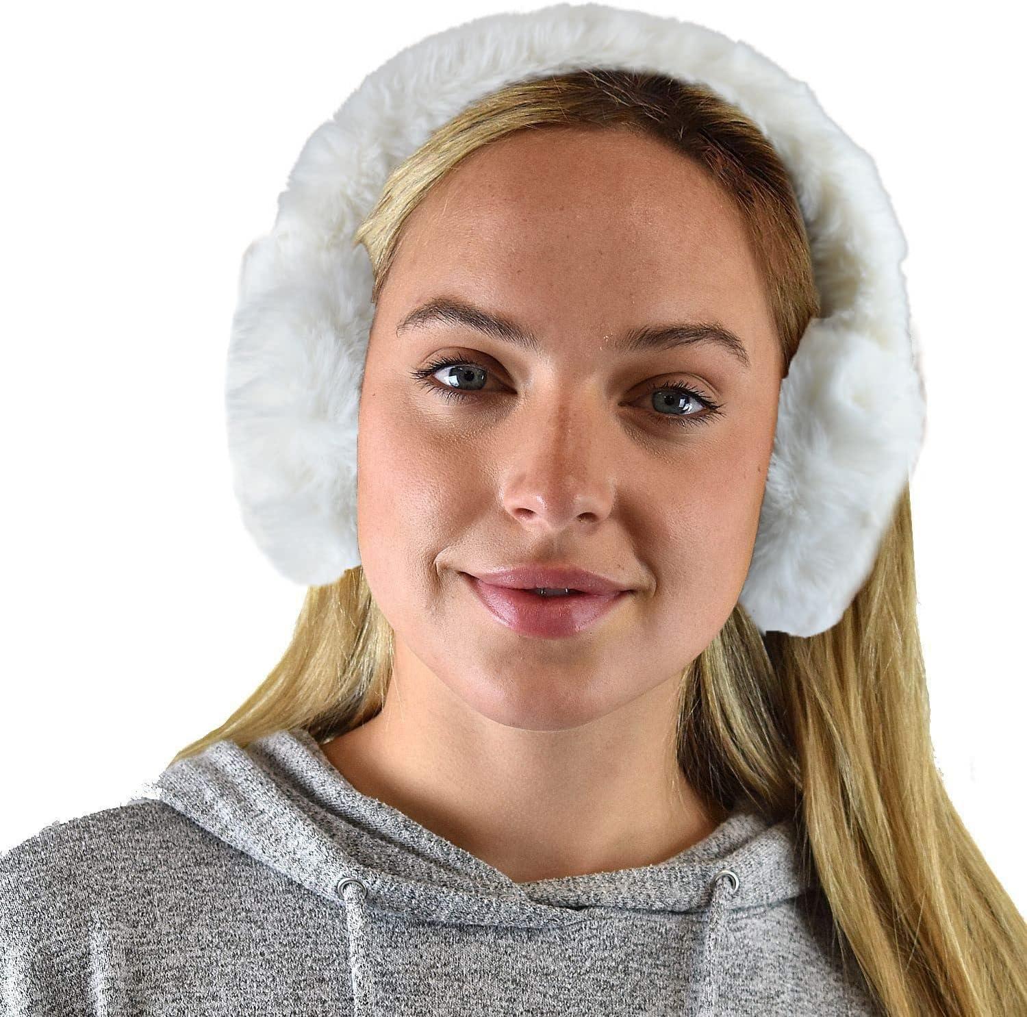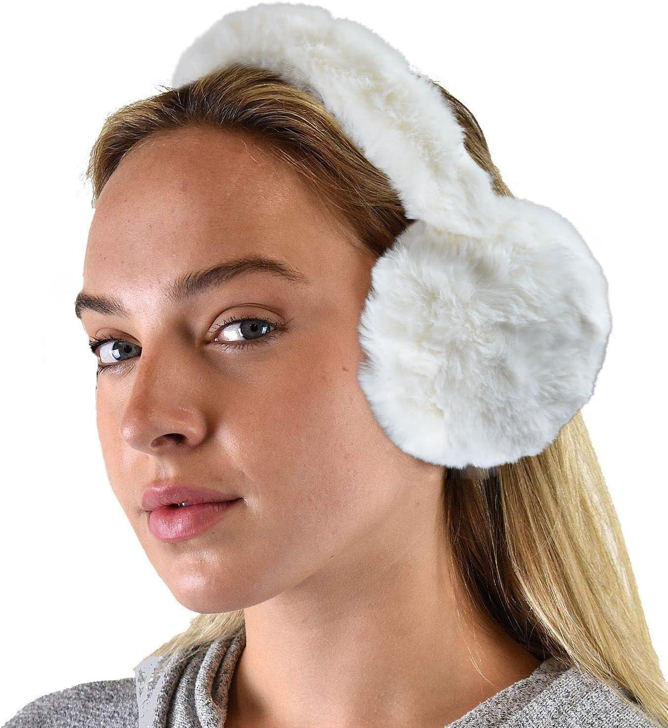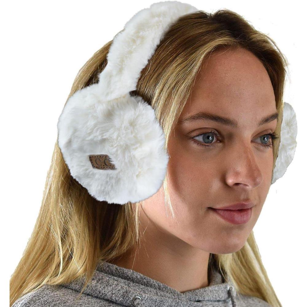 C.C Soft Winter Warm Adjustable Headband Ear Warmer Earmuffs(Furry Ivory)