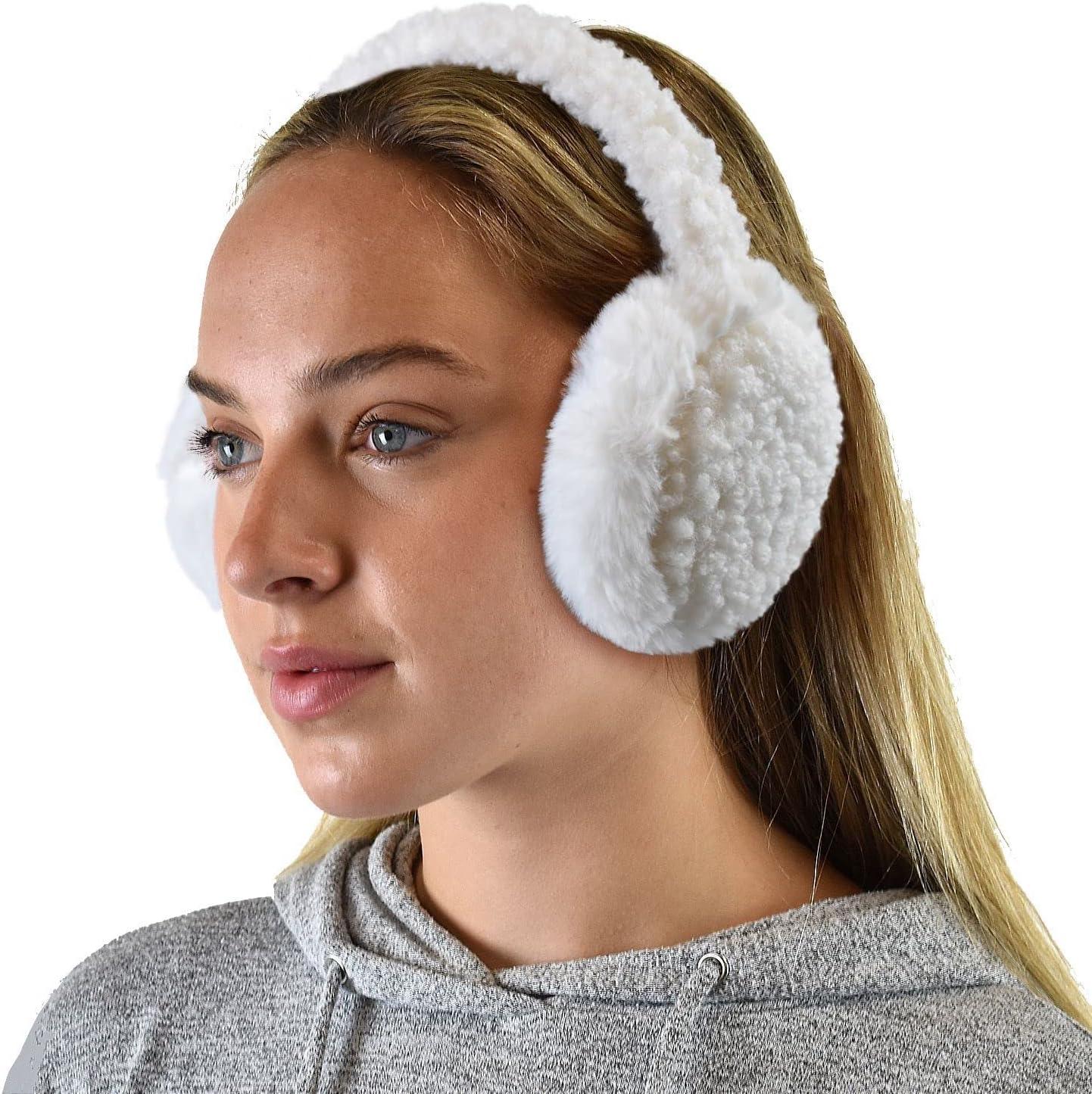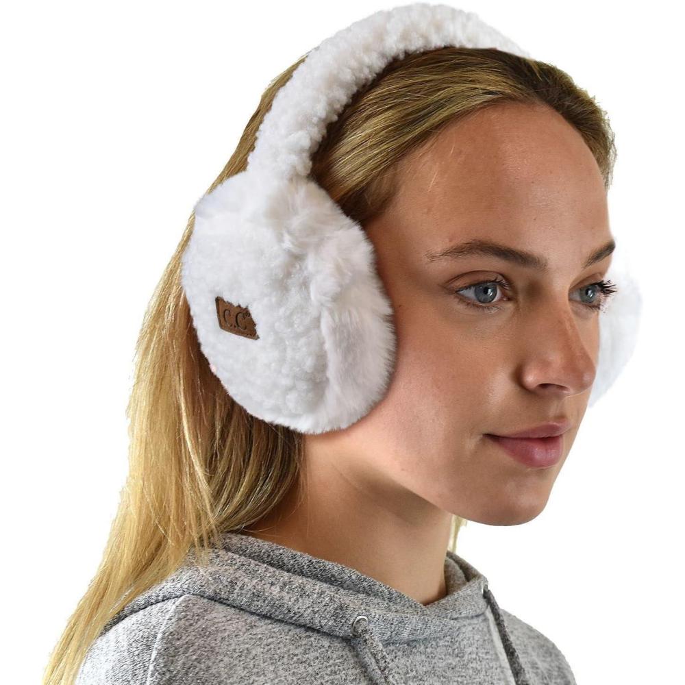 C.C Soft Winter Warm Adjustable Headband Ear Warmer Earmuffs(Sherpa Ivory)