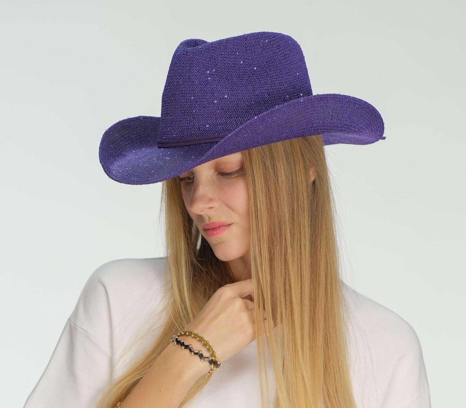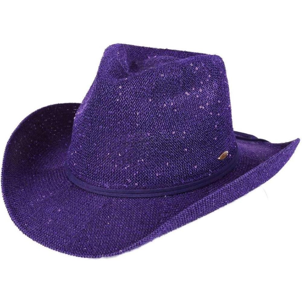 C.C Sparkly Sequin Cowboy Hat with Suede String Trim