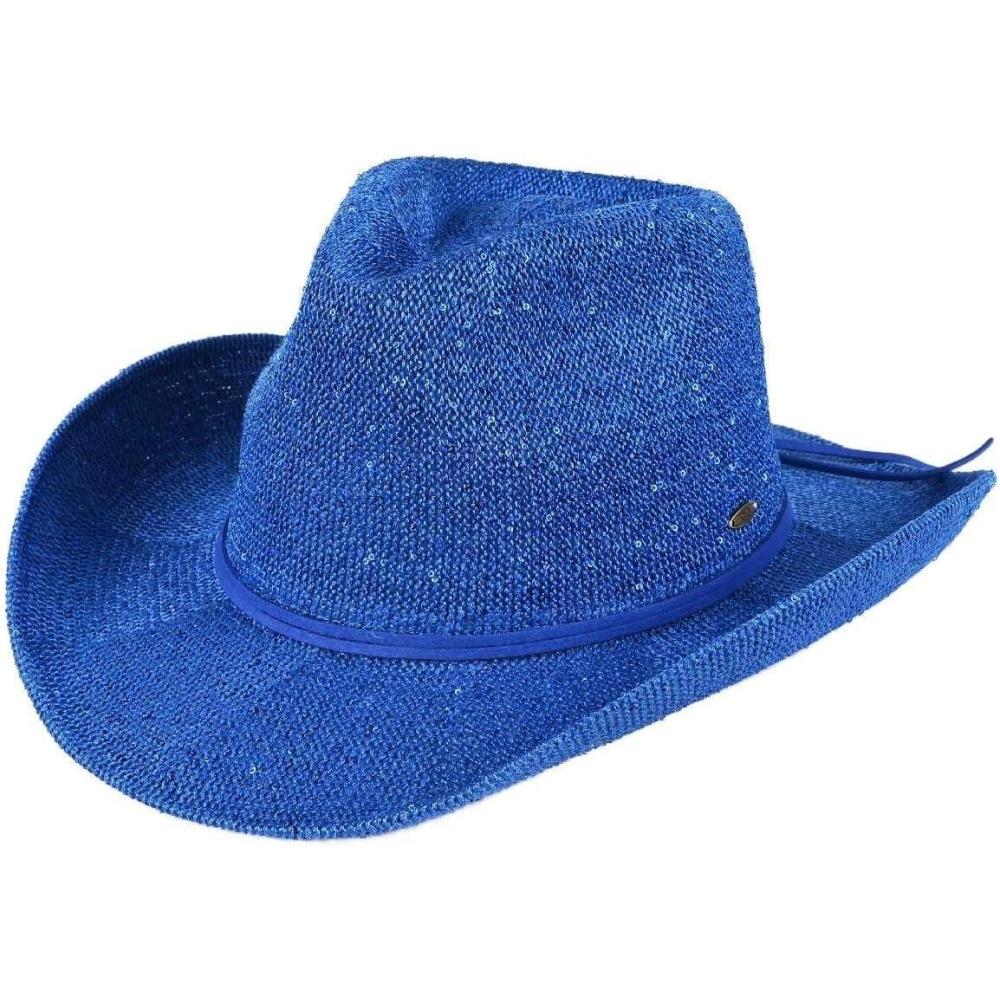 Elevate your style with our C.C Sparkly Sequin Cowboy Hat, available in a stunning Royal Blue. This Medium-sized costume hat is crafted with a suede string trim, making it a perfect blend of fashion and comfort. The sequined design and light-up feature around the brim ensure you'll stand out at any party, concert, or festival. Enjoy different light modes to suit your mood. Ideal for women, this cowgirl-inspired hat is perfect for cosplay, parties, or carnivals. Care instructions: Spot clean with a damp cloth.
