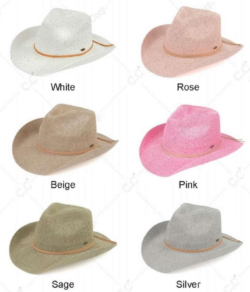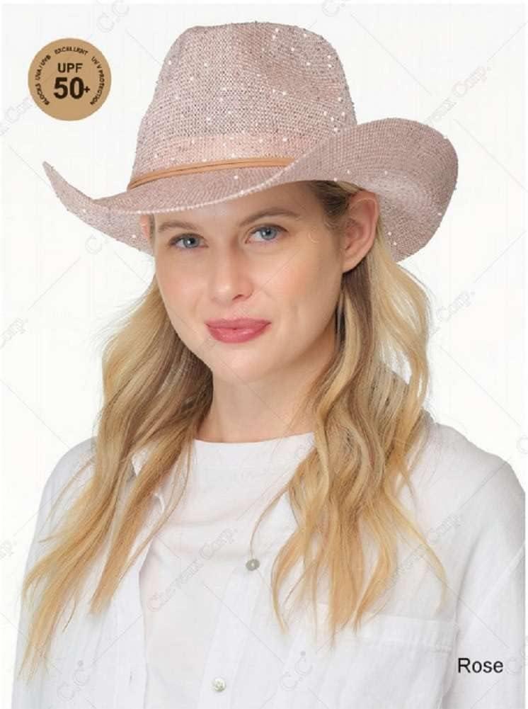 C.C Sparkly Sequin Cowboy Hat with Suede String Trim(Beige)