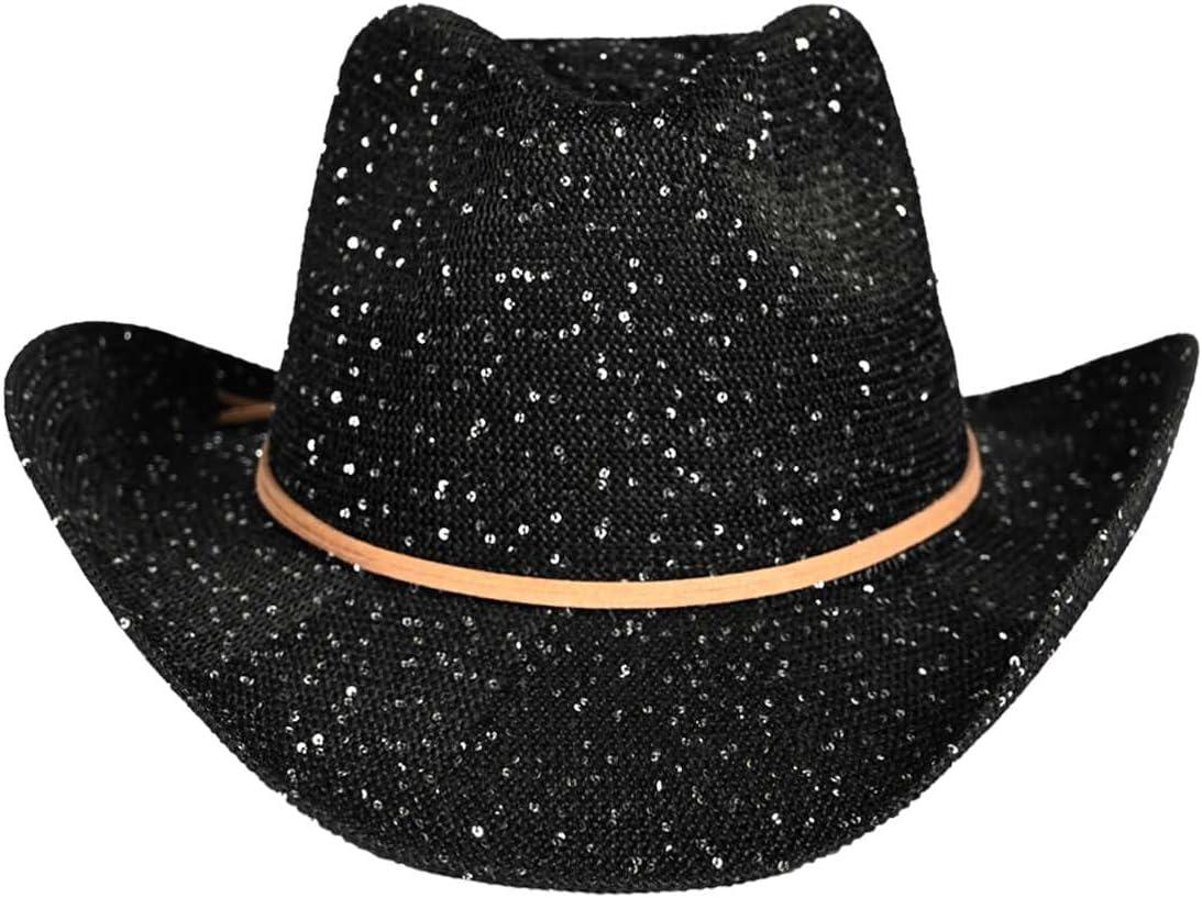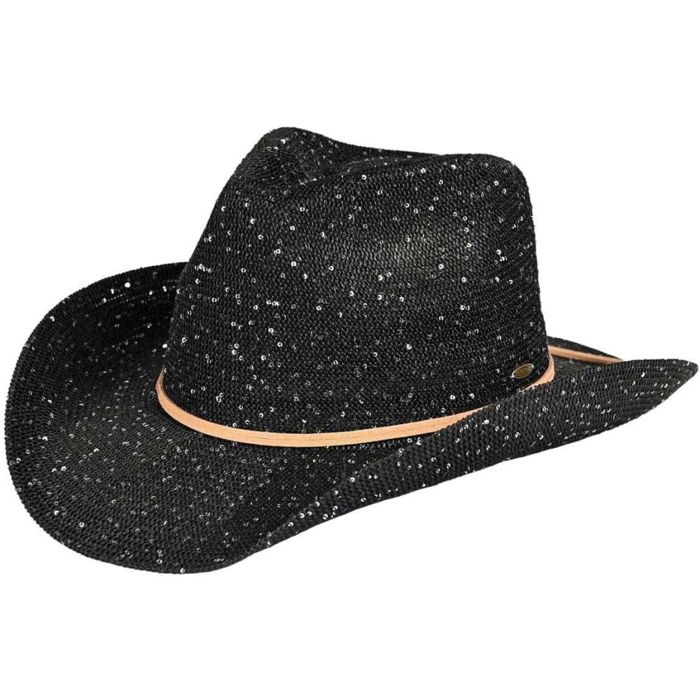 C.C Sparkly Sequin Cowboy Hat with Suede String Trim(Black)