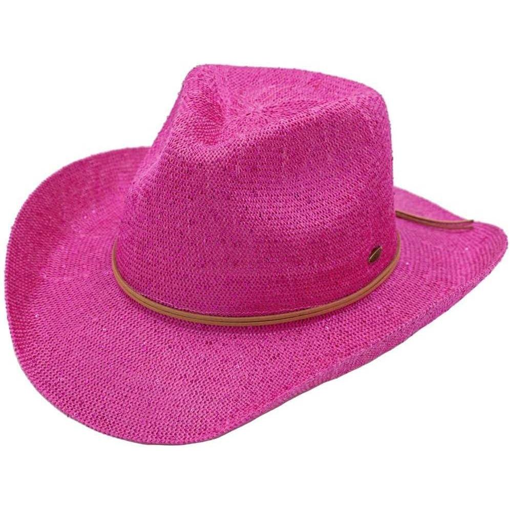 C.C Sparkly Sequin Cowboy Hat with Suede String Trim(Hot Pink)