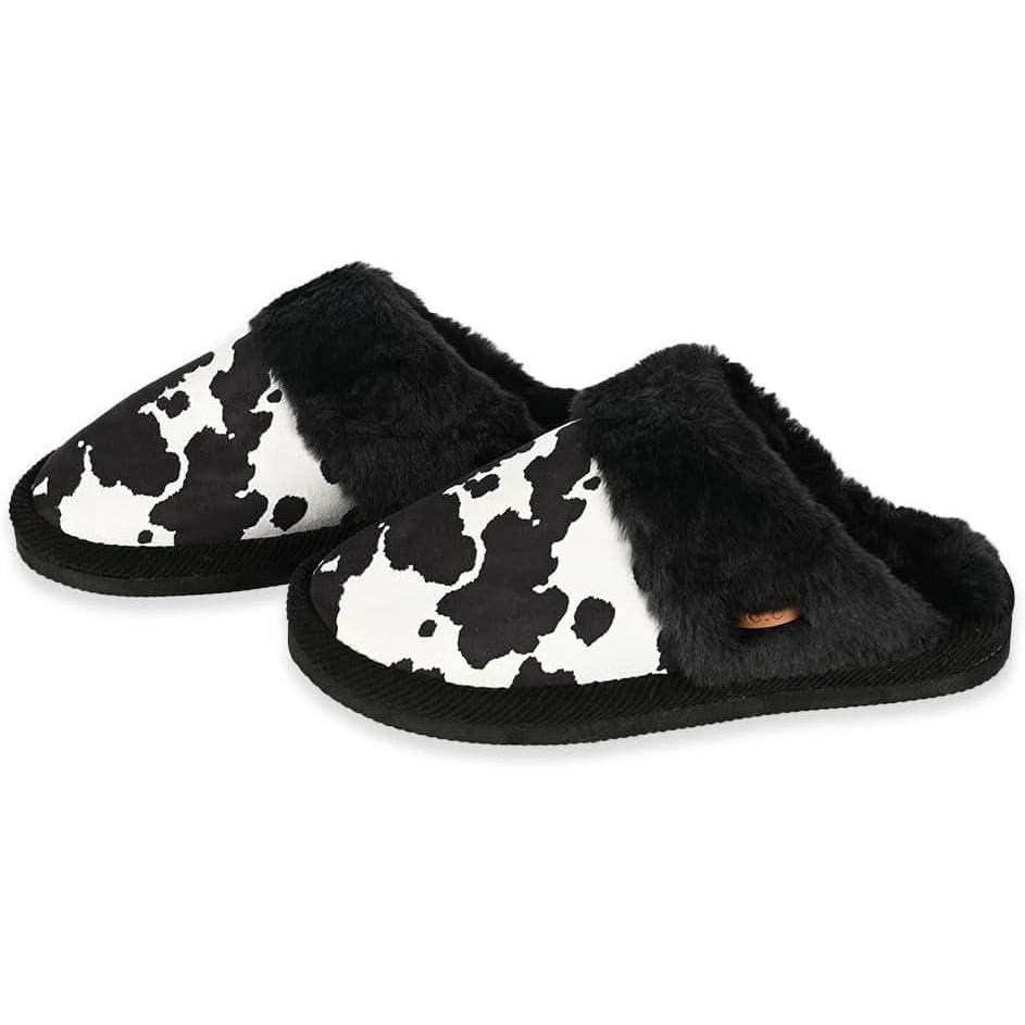 imageCC Suede Faux Fur Lined House IndoorOutdoor Slippers SlipOn for WomenCow Print Black