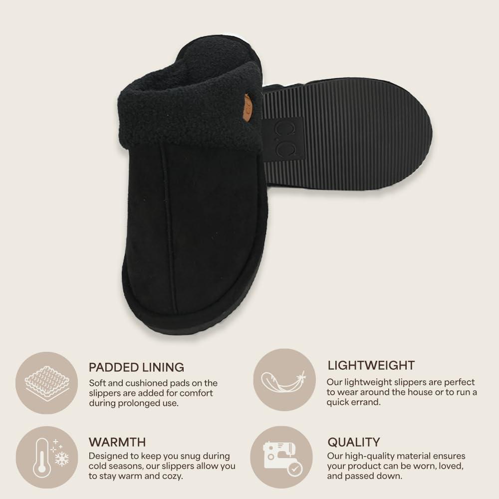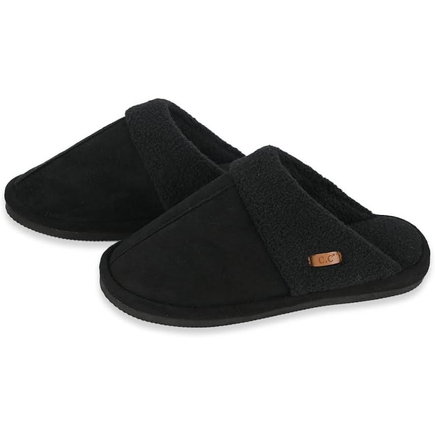 C.C Suede Faux Fur Lined House Indoor-Outdoor Slippers Slip-On for Women(Sherpa Black)
