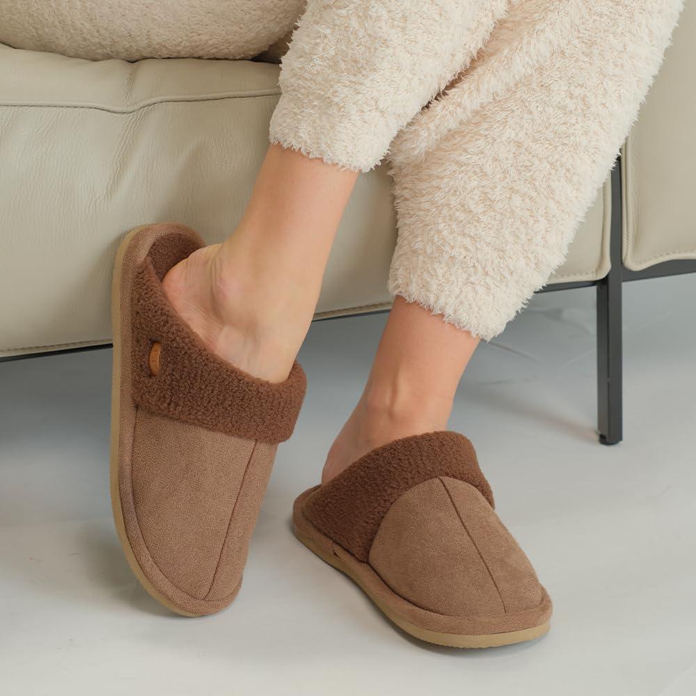 C.C Suede Faux Fur Lined House Indoor-Outdoor Slippers Slip-On for Women(Sherpa Brown)