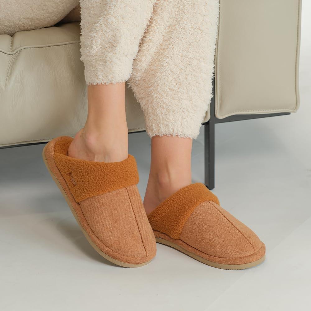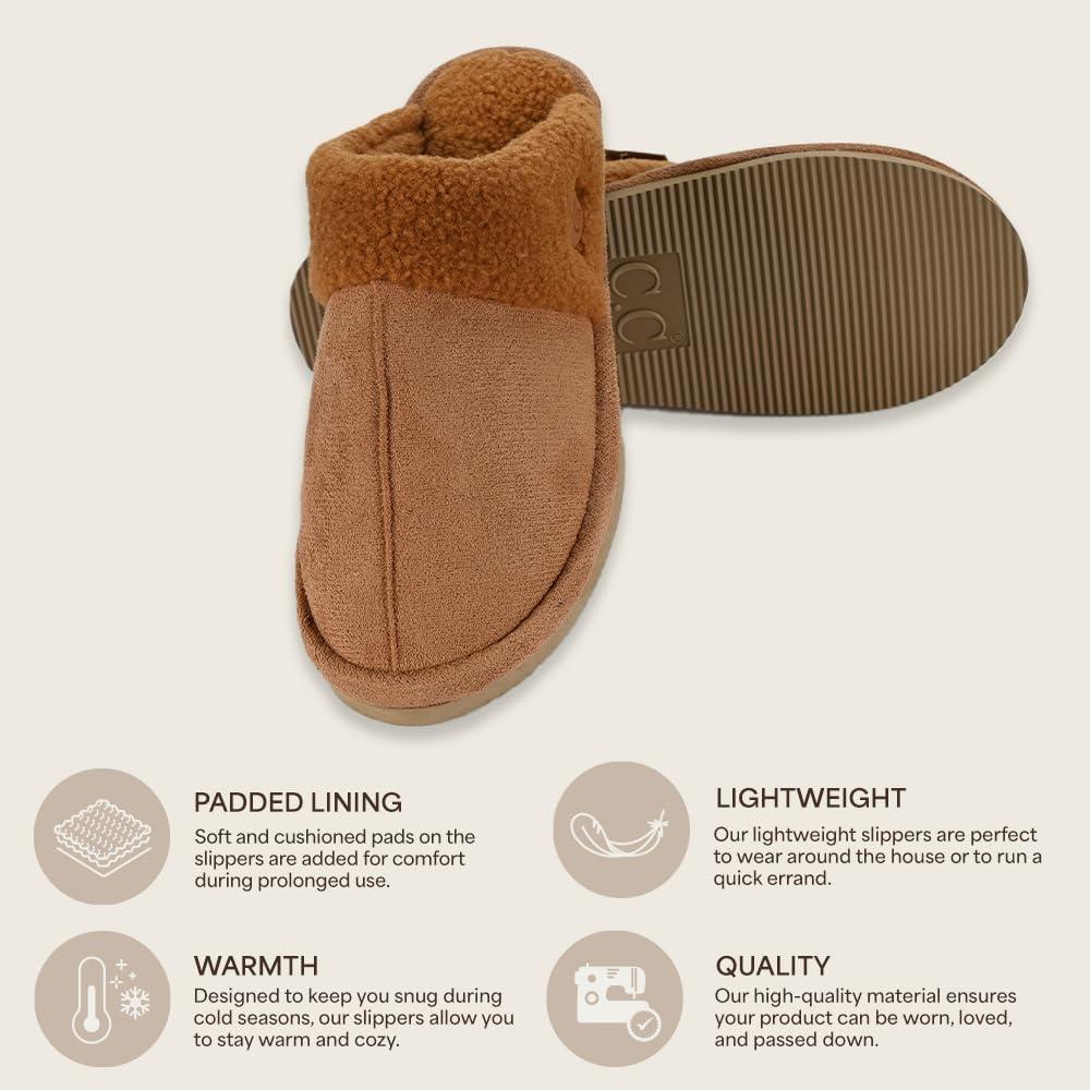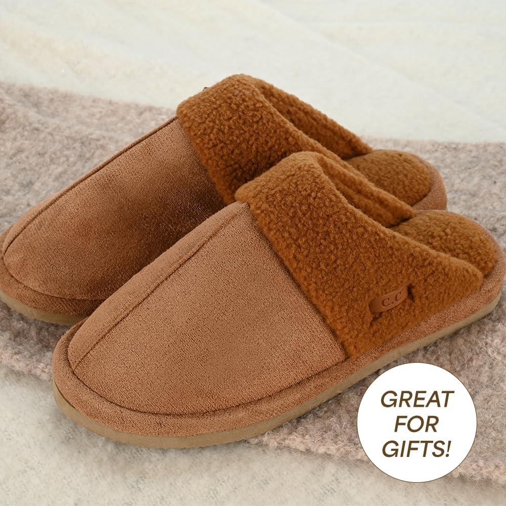 C.C Suede Faux Fur Lined House Indoor-Outdoor Slippers Slip-On for Women(Sherpa Camel)