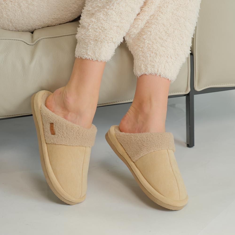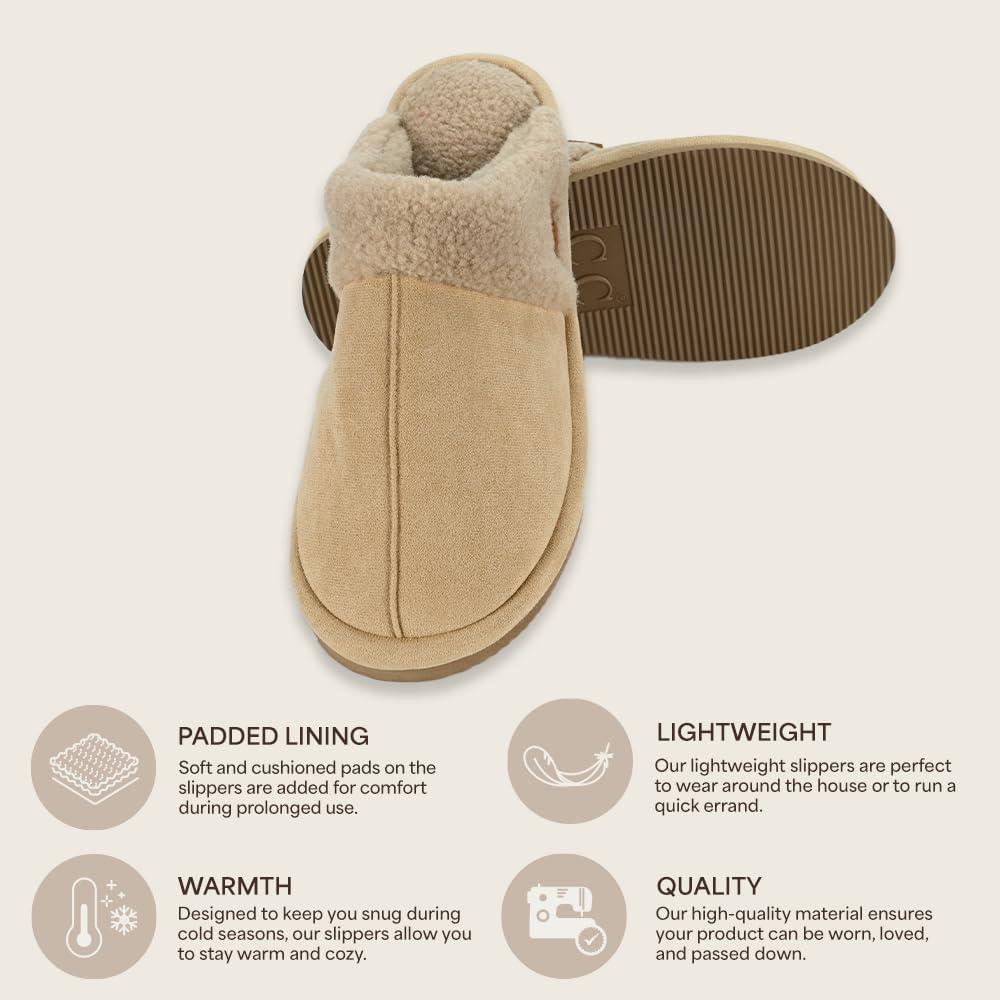 C.C Suede Faux Fur Lined House Indoor-Outdoor Slippers Slip-On for Women(Sherpa Camel)