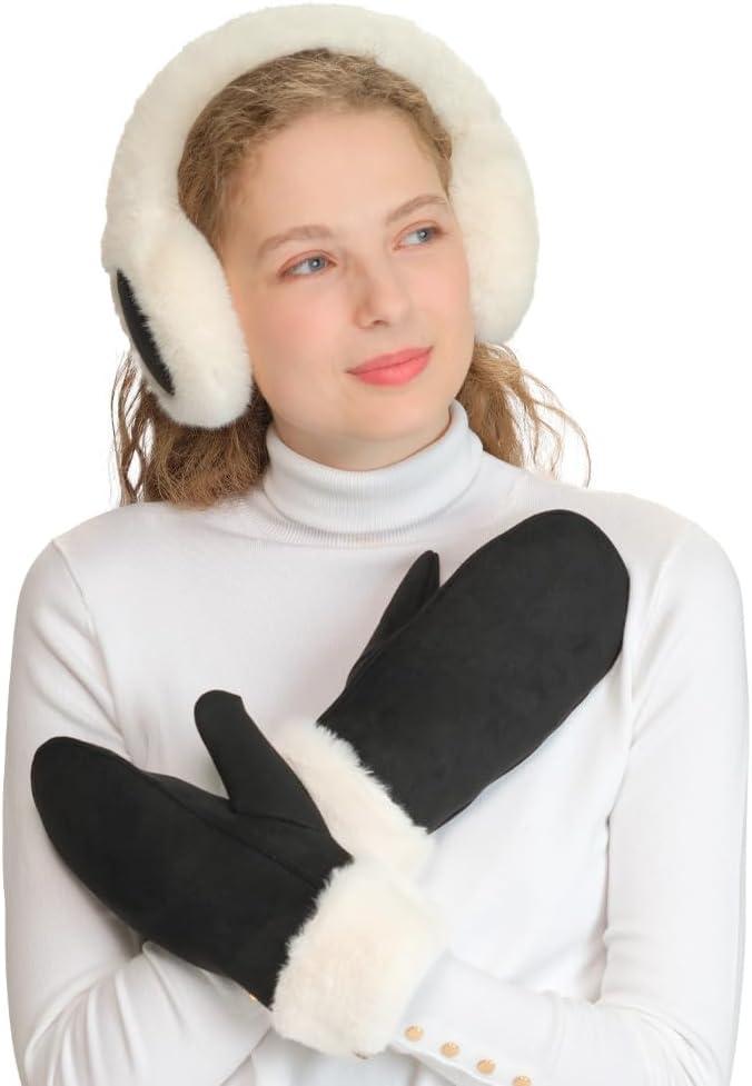Be the first to review “C.C Suede Mitten With Faux Fur Cuff For Women(Black)”