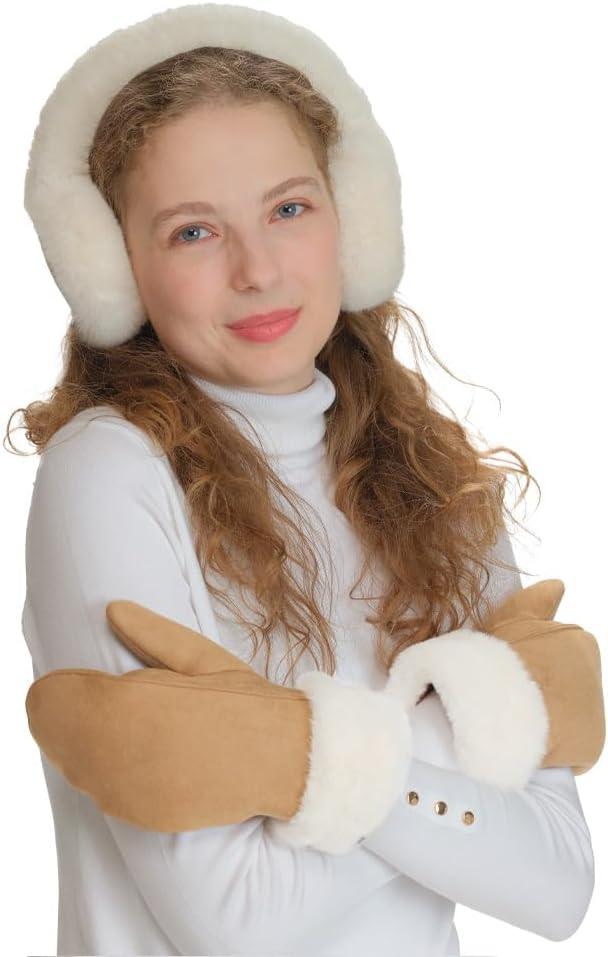 C.C Suede Mitten With Faux Fur Cuff For Women(Camel)