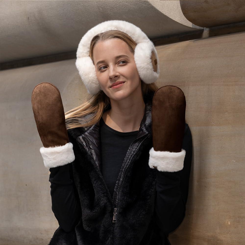 imageCC Suede Mitten With Faux Fur Cuff For WomenChocolate