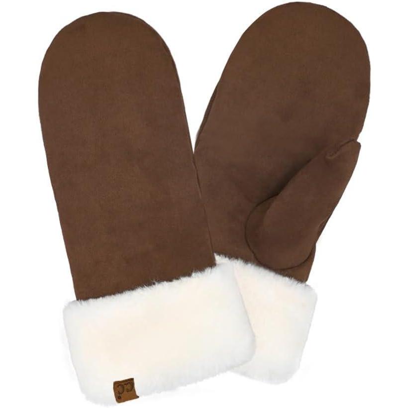 C.C Suede Mitten With Faux Fur Cuff For Women(Chocolate)