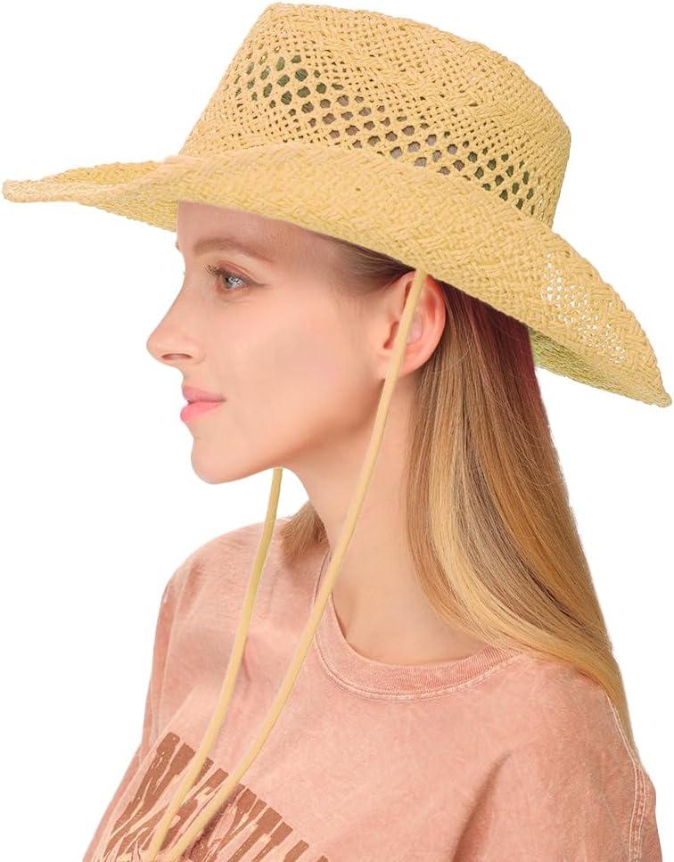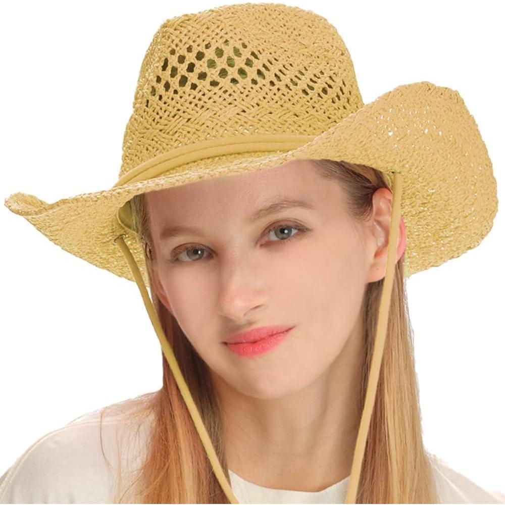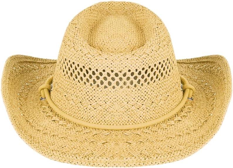 imageCC Sun Straw Western Cowboy Hat Hard Shape Paper DkNatrual
