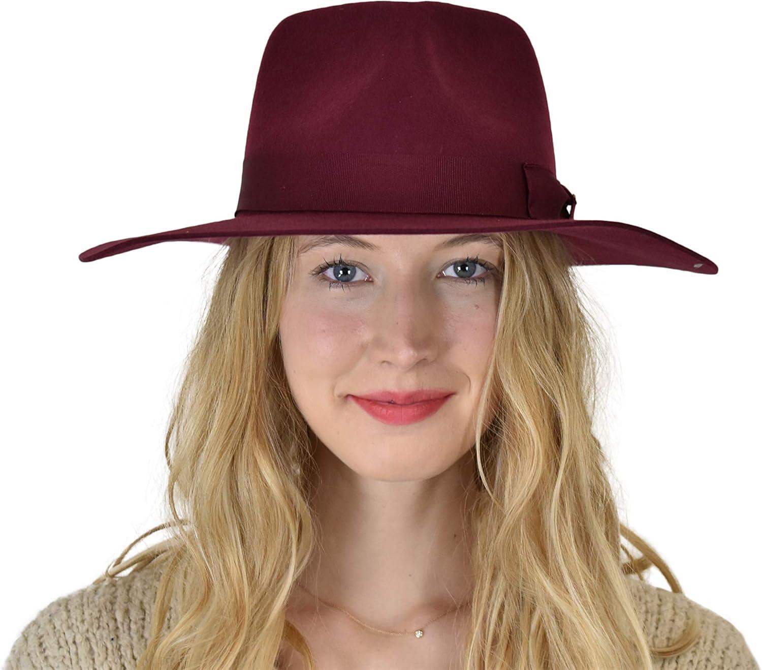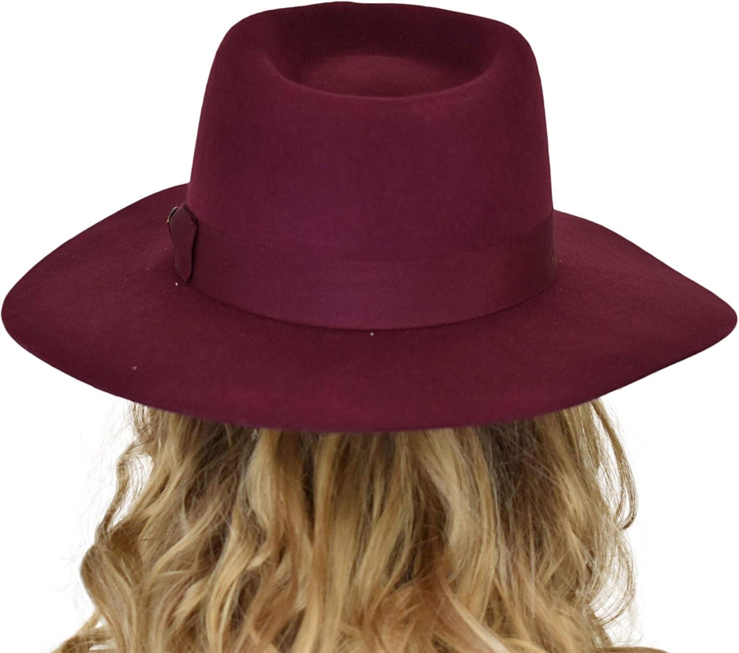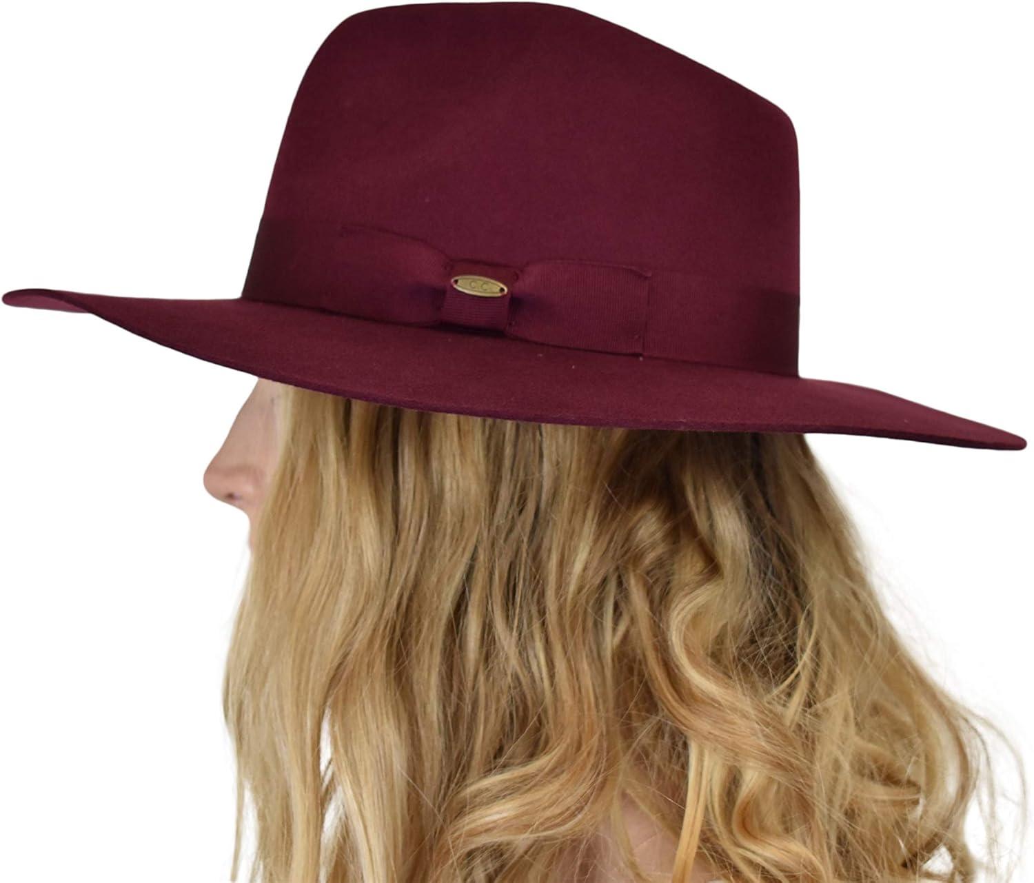 C.C Teardrop Dent Wool Wide Brim Panama Fedora Hat with Band Accent(Solid Berry)