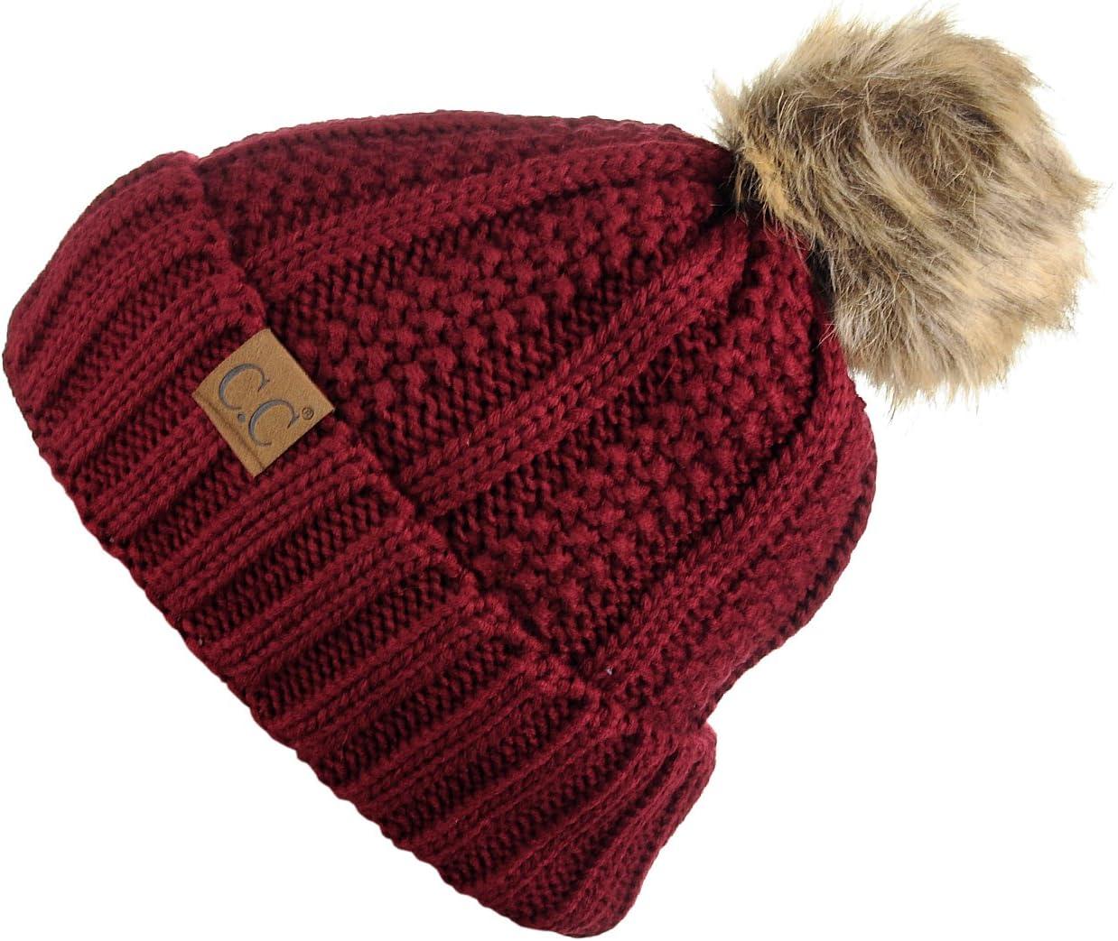 Don’t break the bank! Get the C.C Thick Cable Knit Faux Fuzzy Fur Pom Fleece Lined Skull Cap Cuff Beanie(Burgundy) you want at a price you can afford during our markdown sale.
