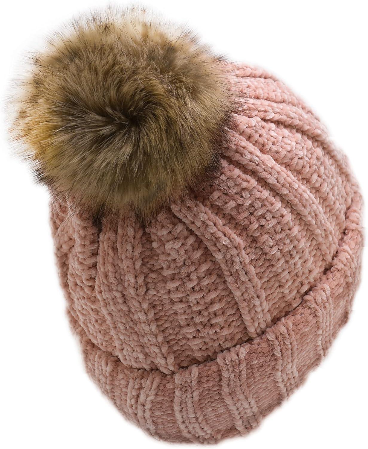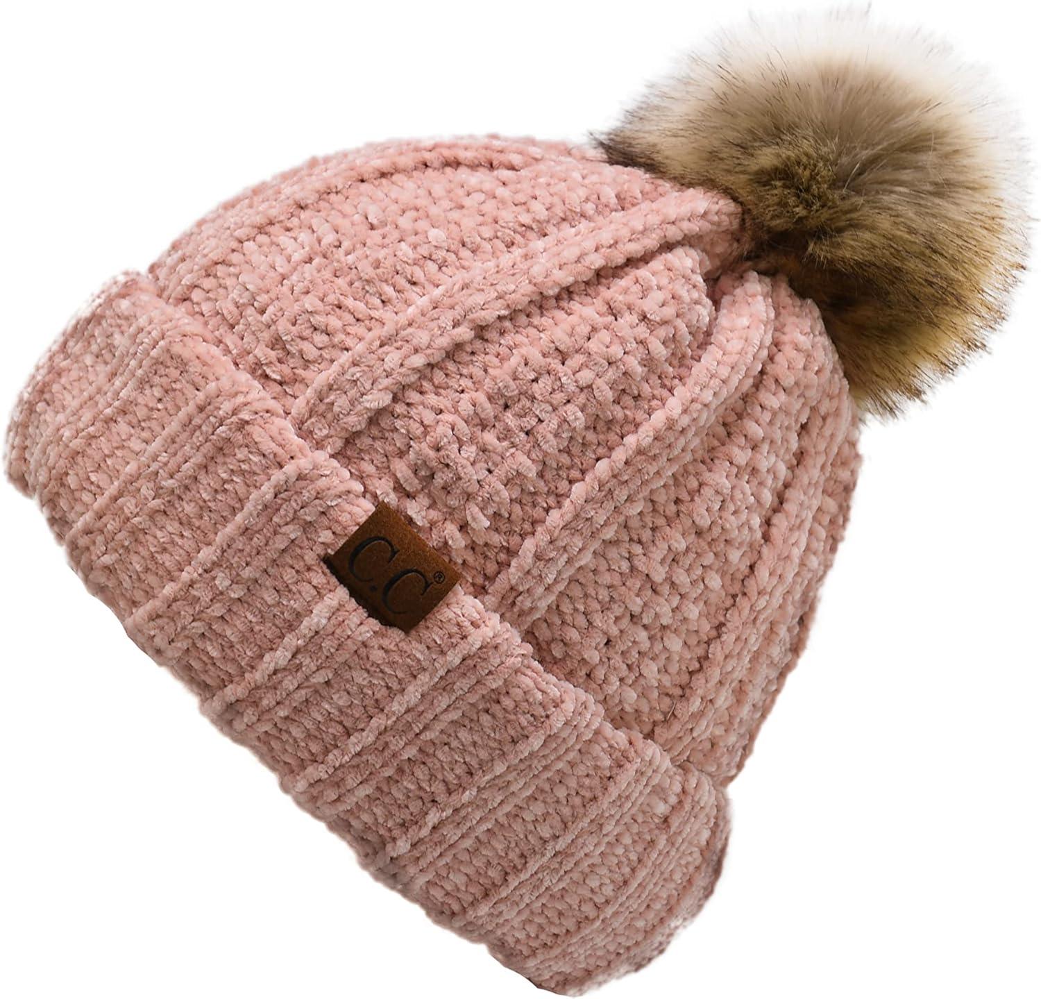 imageCC Thick Cable Knit Faux Fuzzy Fur Pom Fleece Lined Skull Cap Cuff BeanieChenille Indi Pink