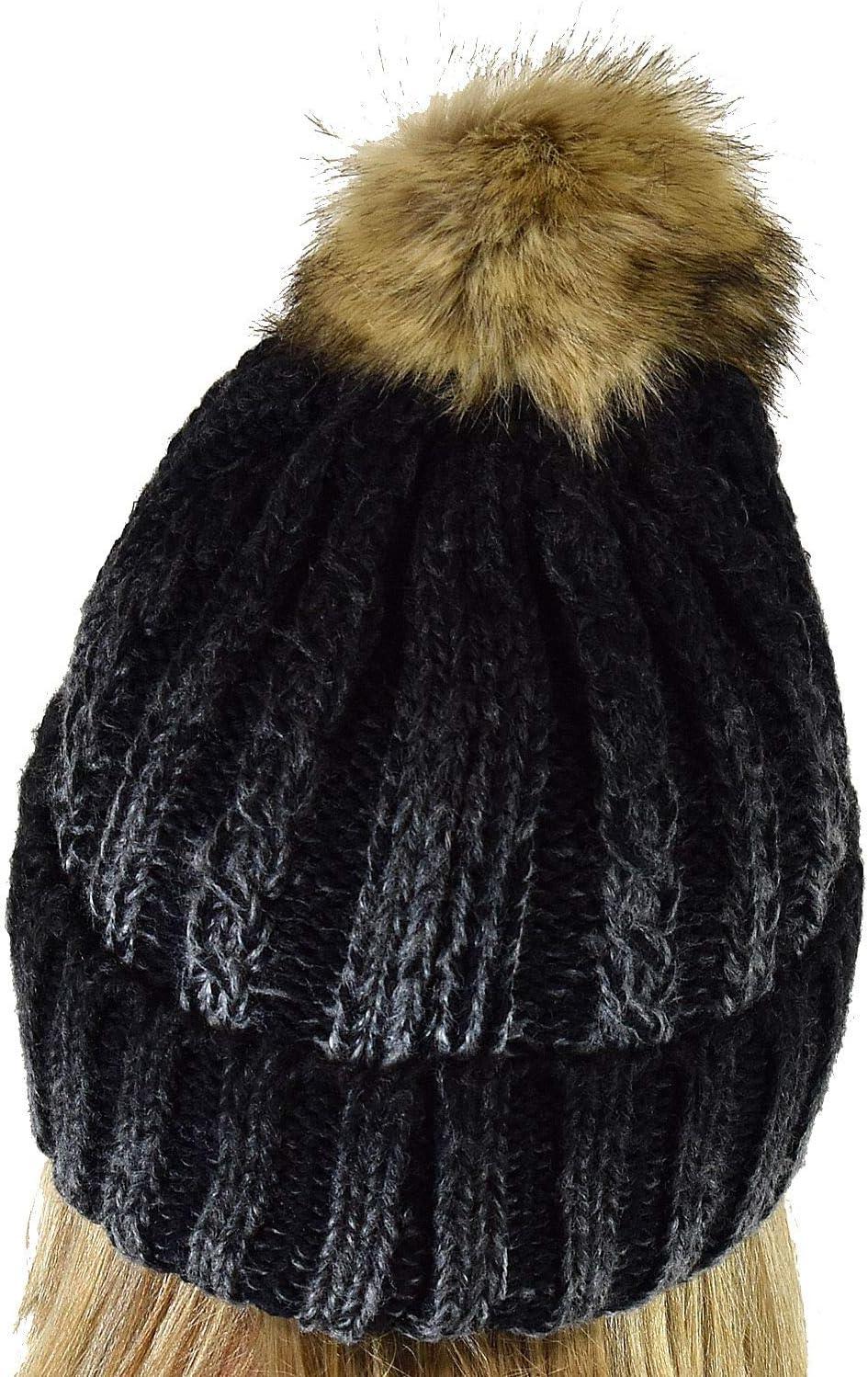 imageCC Thick Cable Knit Faux Fuzzy Fur Pom Skull Cap Cuff BeanieCenter Patch Brown