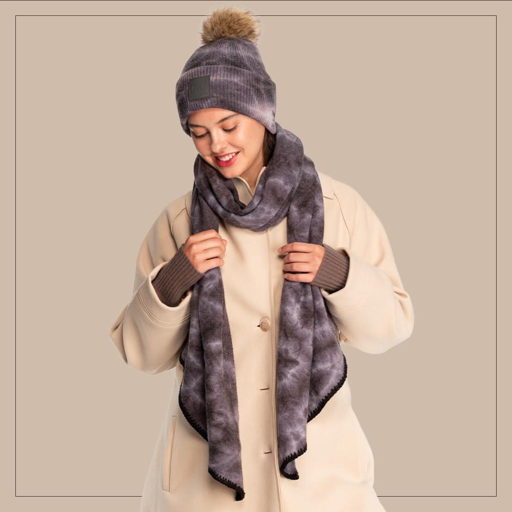 imageCC Tie Dye Multi Color Knit Pom Beanie with Faux Fur Pom and Matching Scarf Set Winter Accessories for WomenDk GreyLt Grey