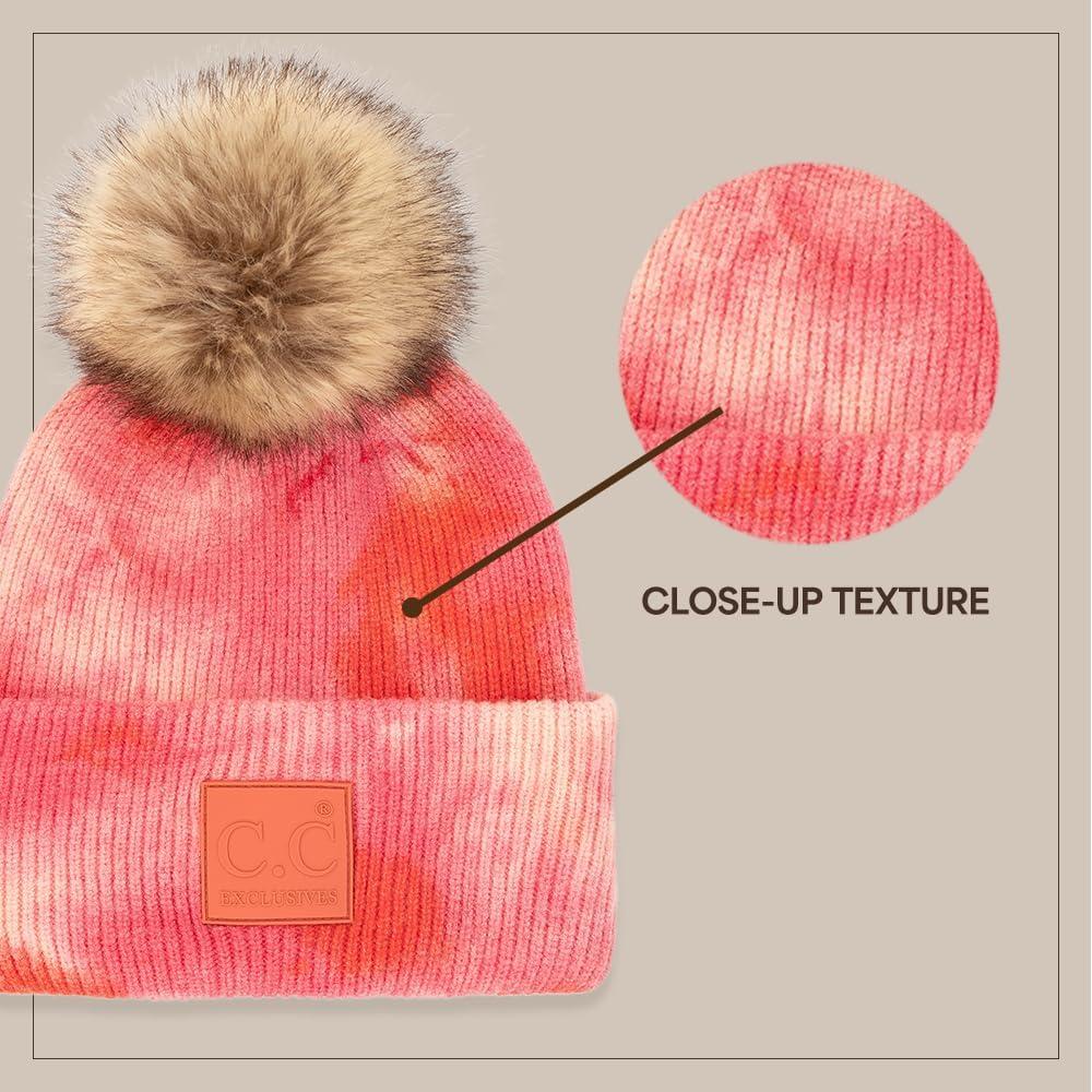 C.C Tie Dye Multi Color Knit Pom Beanie with Faux Fur Pom and Matching Scarf Set, Winter Accessories for Women(Iris/Wild Ginger)