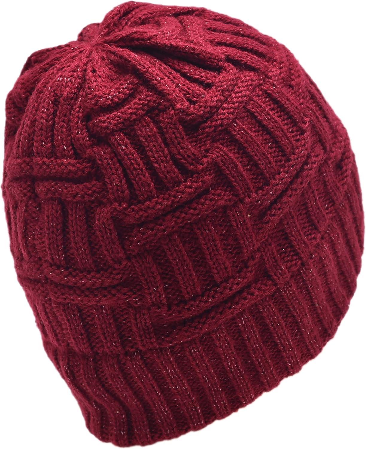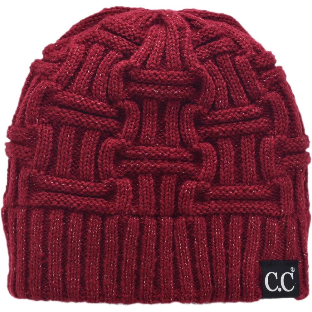 C.C Trendy Lightweight Winter Warm Chunky Soft Stretch Cable Knit Stylish Skull Hat Cap(Burgundy)