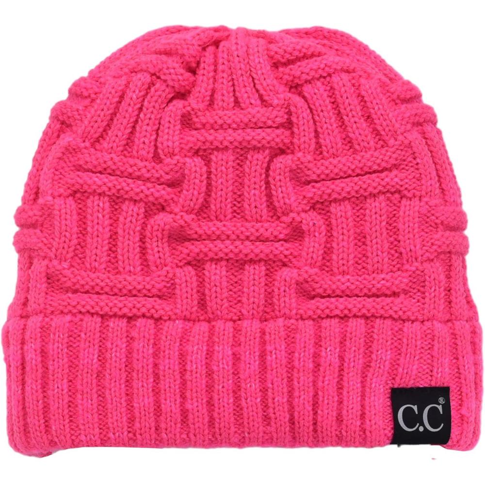 C.C Trendy Lightweight Winter Warm Chunky Soft Stretch Cable Knit Stylish Skull Hat Cap(Candy Pink)