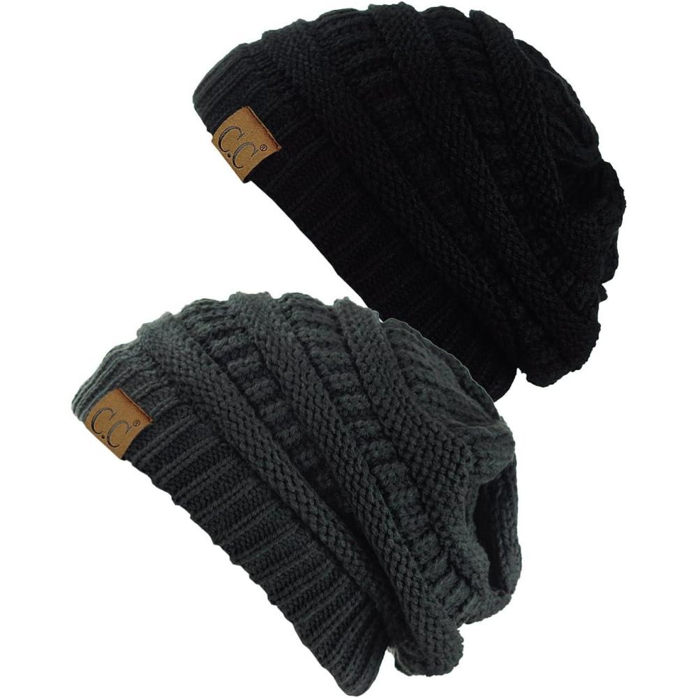 imageCC Trendy Warm Chunky Soft Stretch Cable Knit Beanie Skully 2 PackBlackMelange Gray