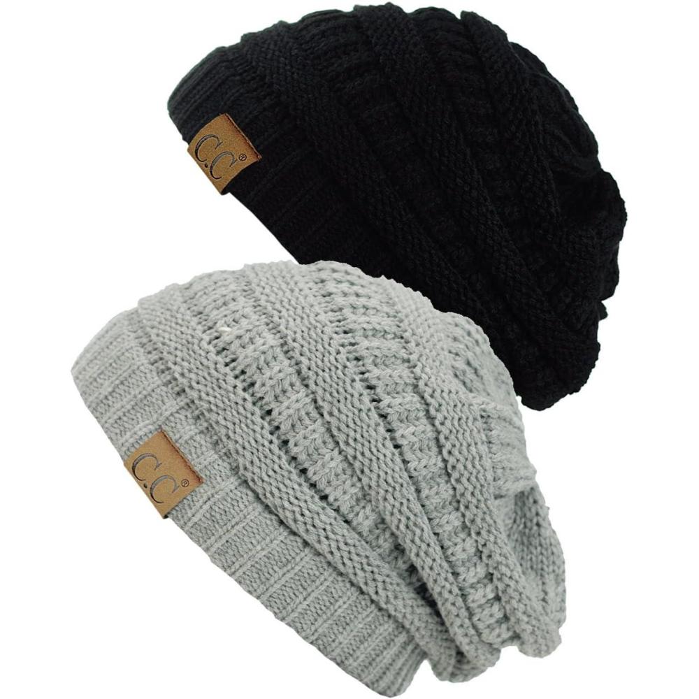 imageCC Trendy Warm Chunky Soft Stretch Cable Knit Beanie Skully 2 PackBlackNatural Gray