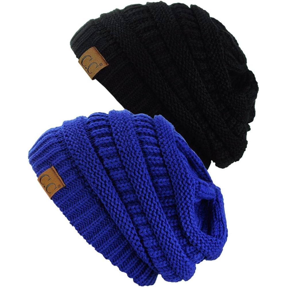 C.C Trendy Warm Chunky Soft Stretch Cable Knit Beanie Skully, 2 Pack(Black/Royal)