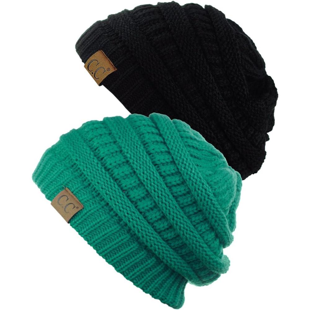 imageCC Trendy Warm Chunky Soft Stretch Cable Knit Beanie Skully 2 PackBlackSea Green