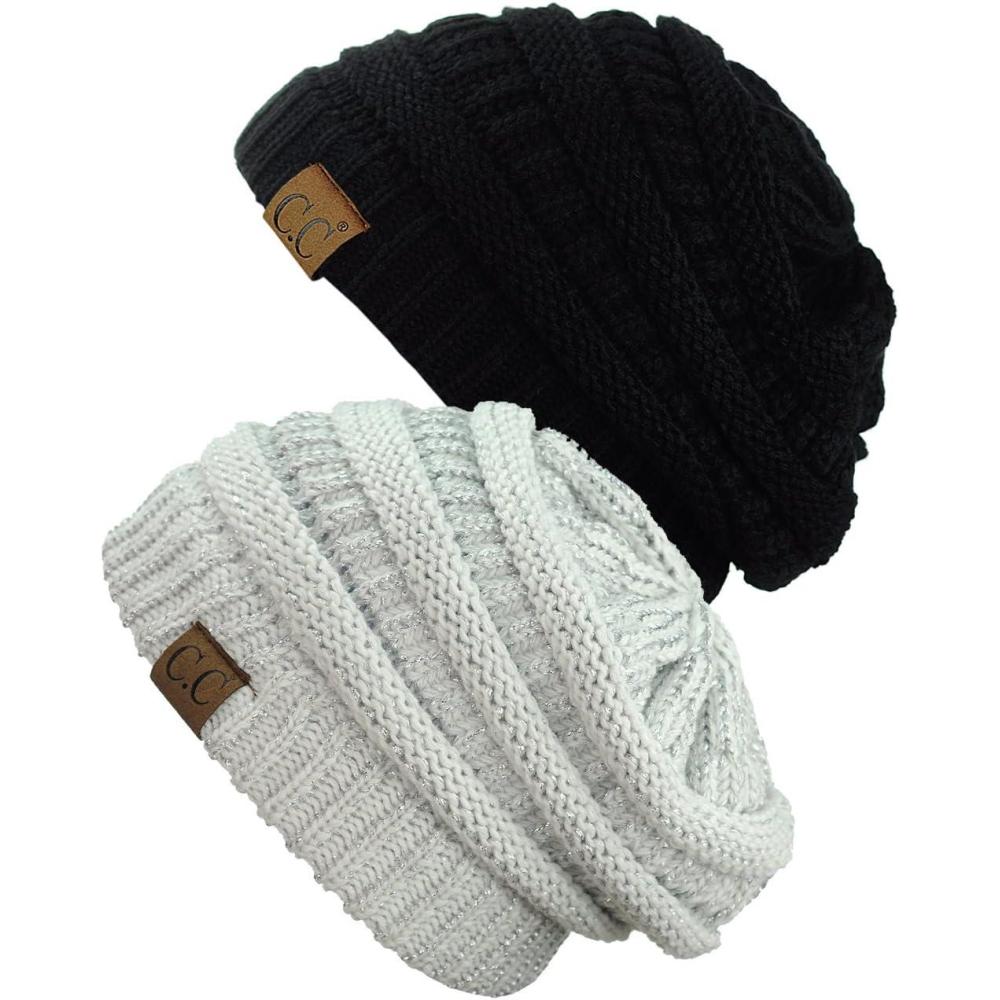 C.C Trendy Warm Chunky Soft Stretch Cable Knit Beanie Skully, 2 Pack(Black/Silver)