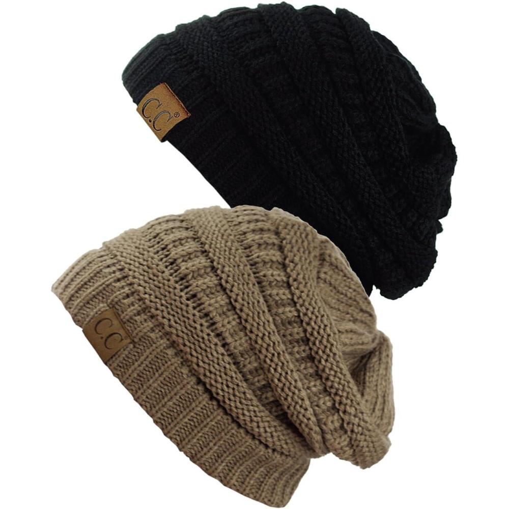 imageCC Trendy Warm Chunky Soft Stretch Cable Knit Beanie Skully 2 PackBlackTaupe