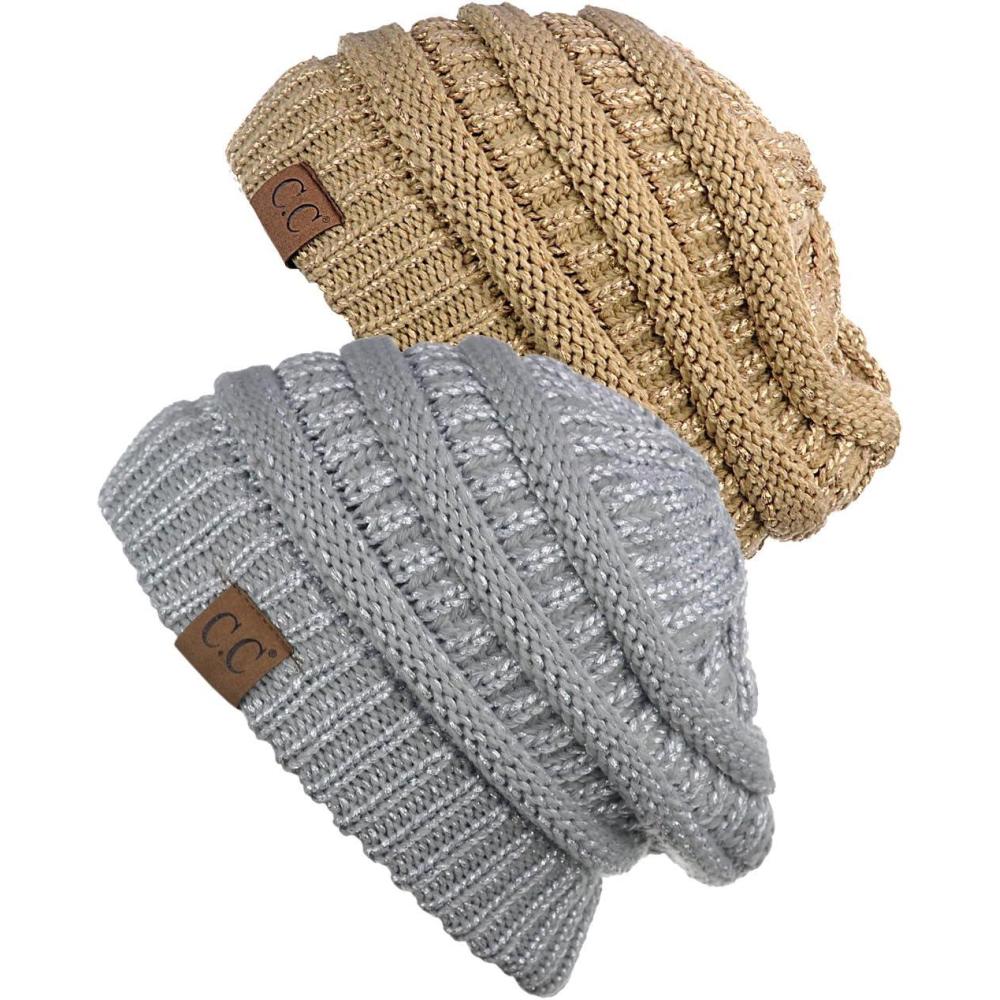 C.C Trendy Warm Chunky Soft Stretch Cable Knit Beanie Skully, 2 Pack(Gold/Silver)