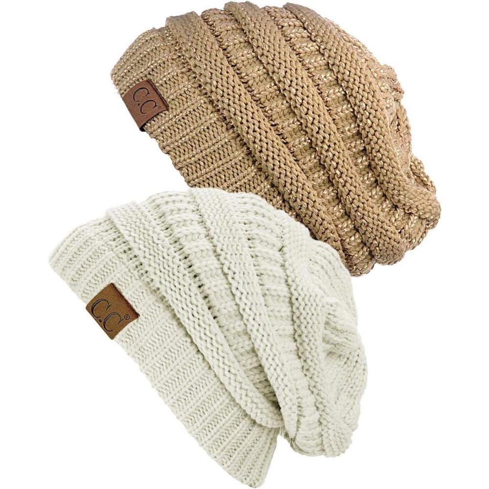 C.C Trendy Warm Chunky Soft Stretch Cable Knit Beanie Skully, 2 Pack(Ivory/Gold)