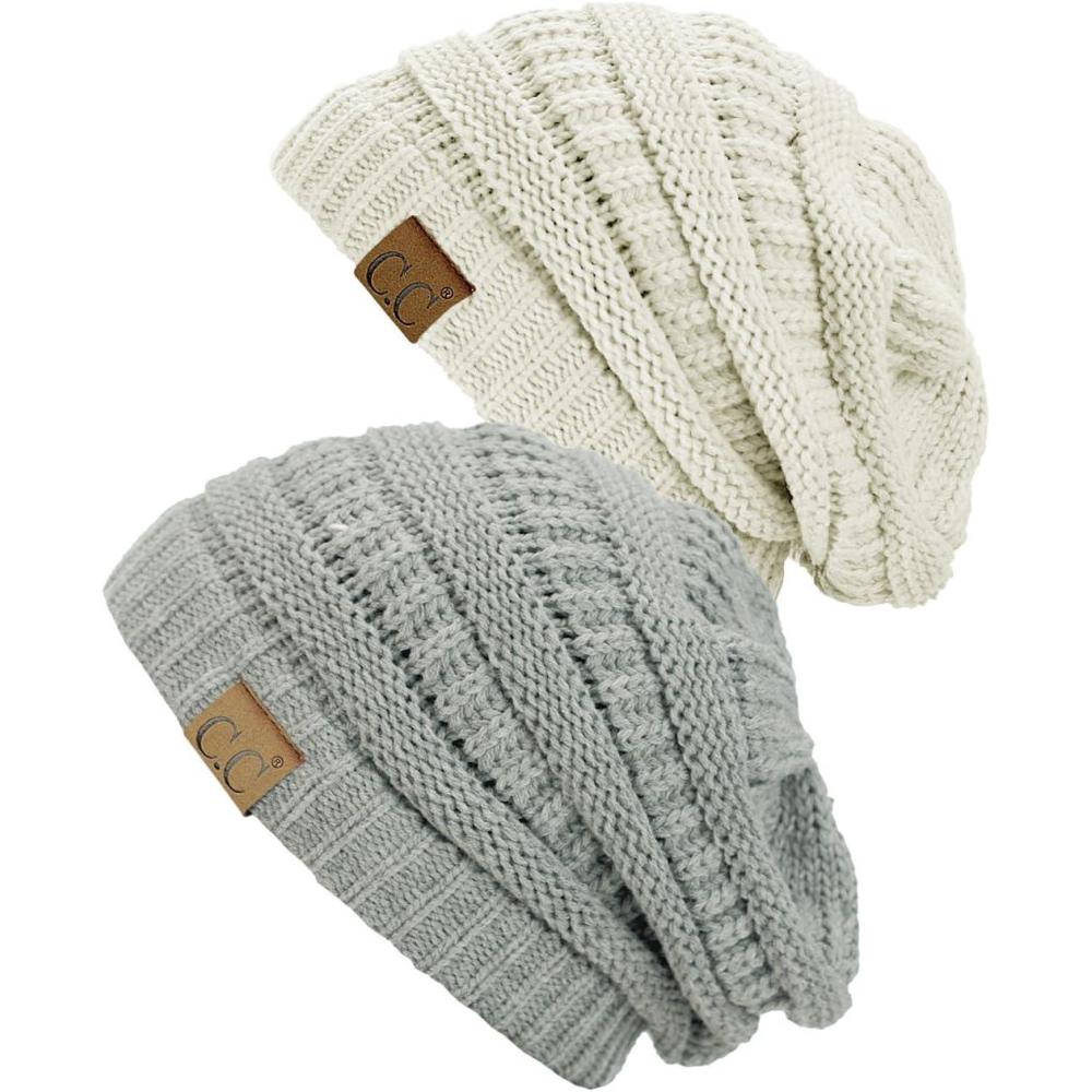 C.C Trendy Warm Chunky Soft Stretch Cable Knit Beanie Skully, 2 Pack(Natural Gray/Ivory)
