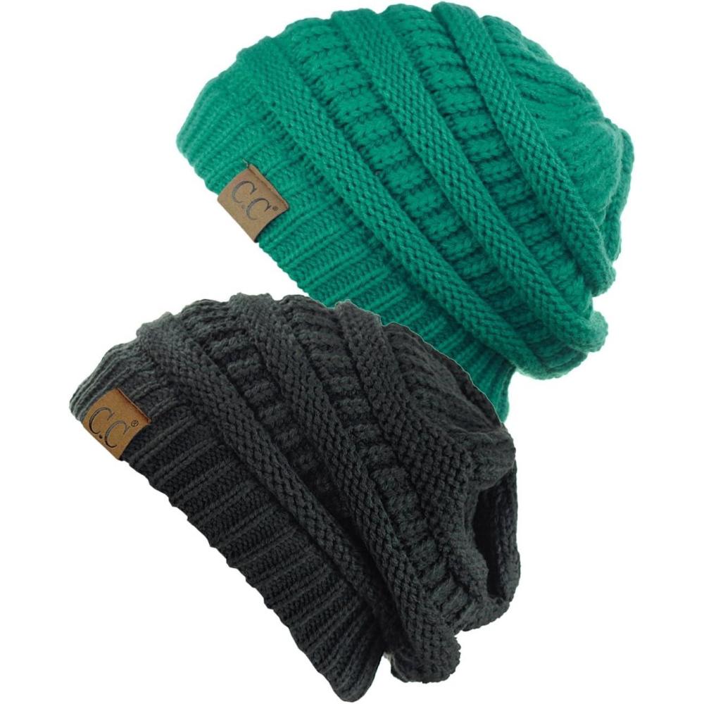 imageCC Trendy Warm Chunky Soft Stretch Cable Knit Beanie Skully 2 PackSea GreenMelange Gray