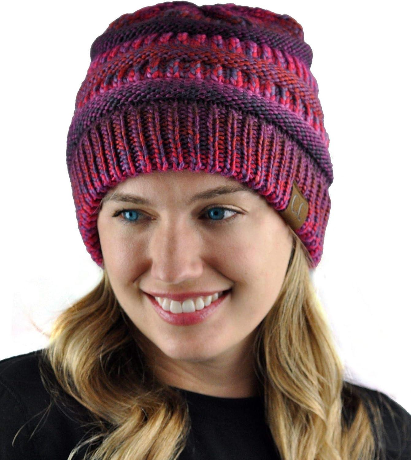 C.C Trendy Warm Chunky Soft Stretch Cable Knit Beanie Skully(Burgundy Blend)