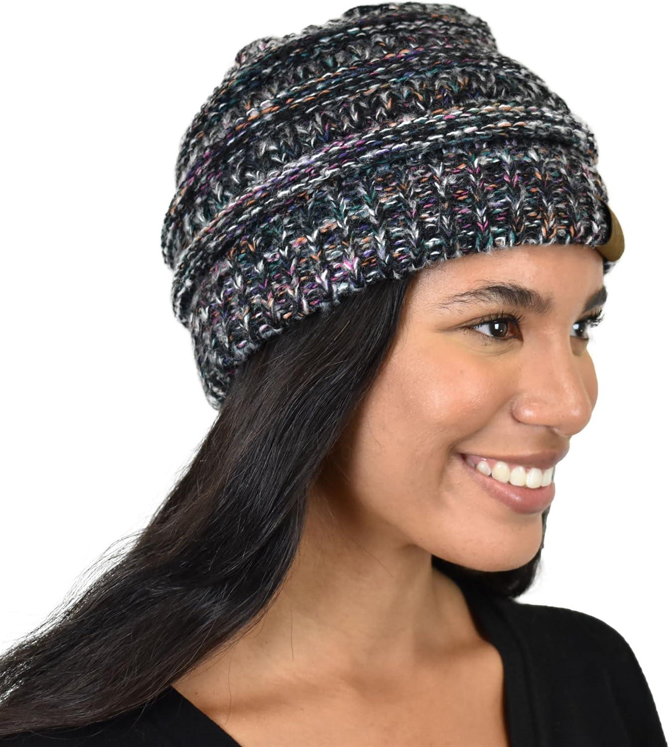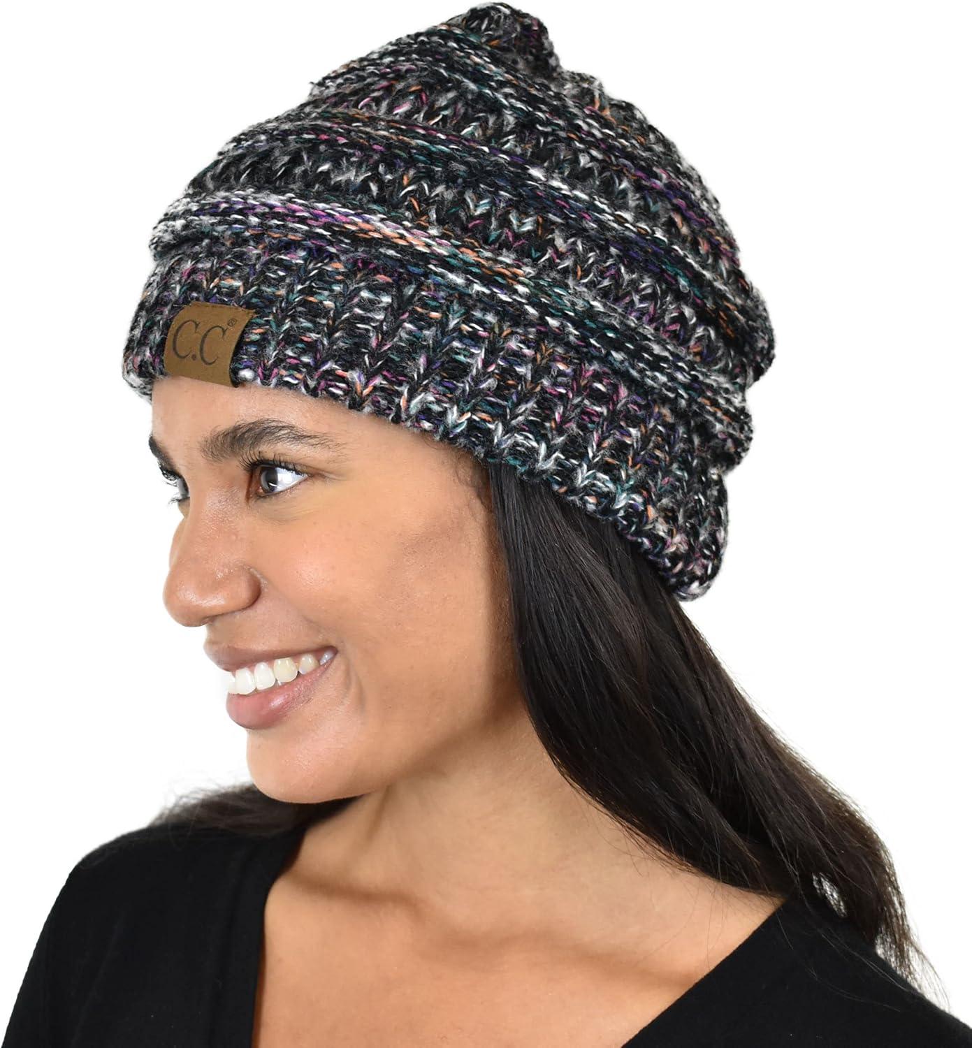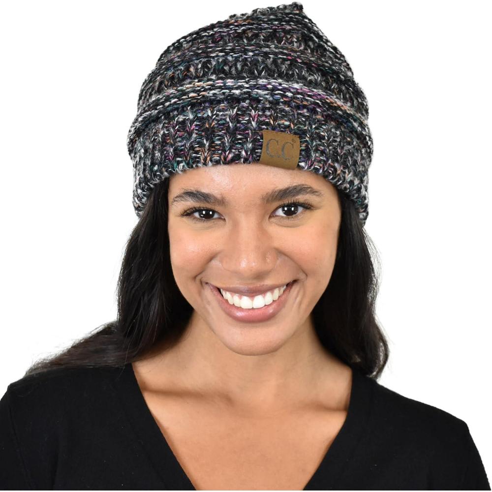 C.C Trendy Warm Chunky Soft Stretch Cable Knit Beanie Skully(Multi Black)