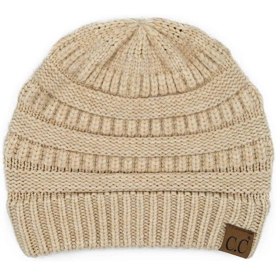 C.C Trendy Warm Chunky Soft Stretch Cable Knit Beanie Skully(Snuggly Soft Beige Mix)