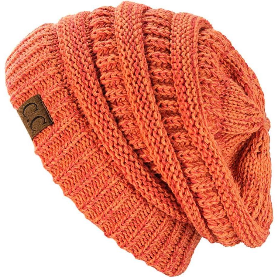 C.C Trendy Warm Chunky Soft Stretch Cable Knit Beanie(2 Tone Peach)